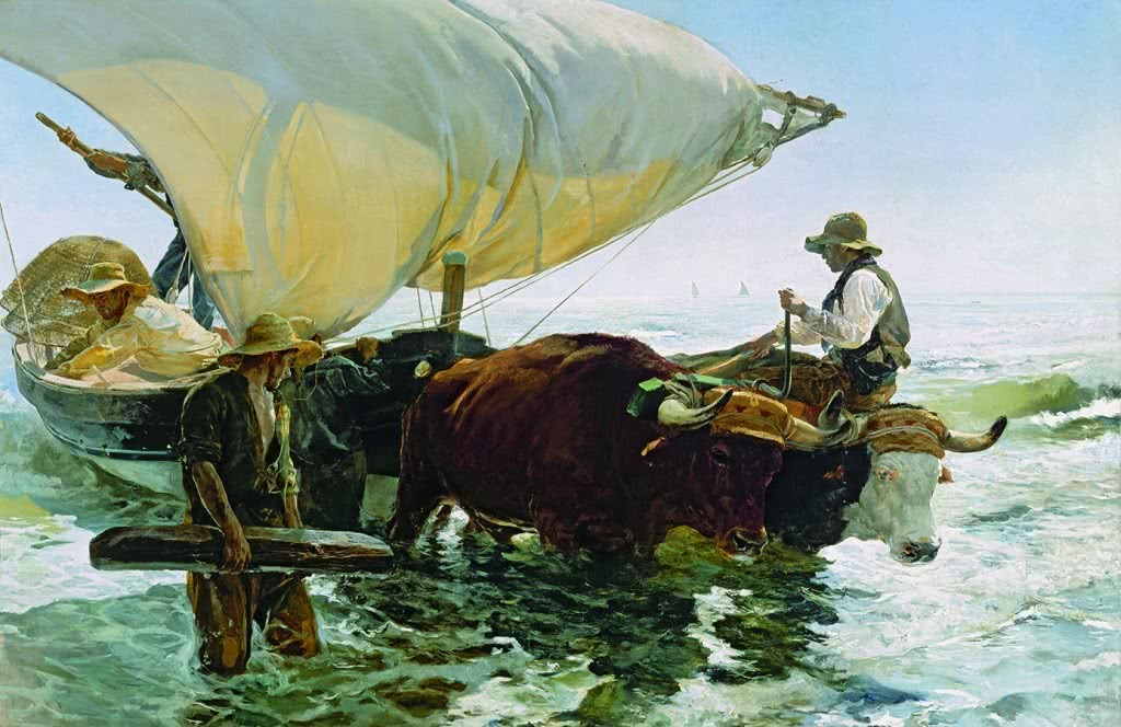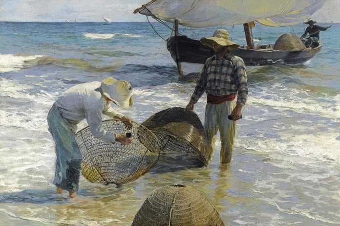 El mar. El triunfo de la luz y el color. Los triunfos alcanzados por Sorolla en sus grandes exposiciones internacionales tienen como principal protagonista el Mediterráneo. Sus obras relacionadas con el mundo del trabajo muestran una clara preferencia por las actividades de los marineros en las playas de Valencia. En estas obras Sorolla resulta cada vez más osado en su experimentación a través de la luz y el color, verdaderos protagonistas de sus cuadros.