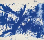 Obras maestras de la Colección del Museo Guggenheim Bilbao brinda al público la oportunidad de contemplar una selección de estas piezas, en la que destacan, por ejemplo, el luminoso lienzo Sin título, de Mark Rothko, frente a La gran Antropometría azul (ANT 105) de Yves Klein dominada por el inconfundible tono azul que el artista patentó con su nombre; o la icónica imagen de Marilyn Monroe repetida una y otra vez por Andy Warhol frente a la expresividad que preside el gran lienzo serigrafiado de Robert Rauschenberg Barcaza, o Nueve discursos sobre Cómodo de Cy Twombly.