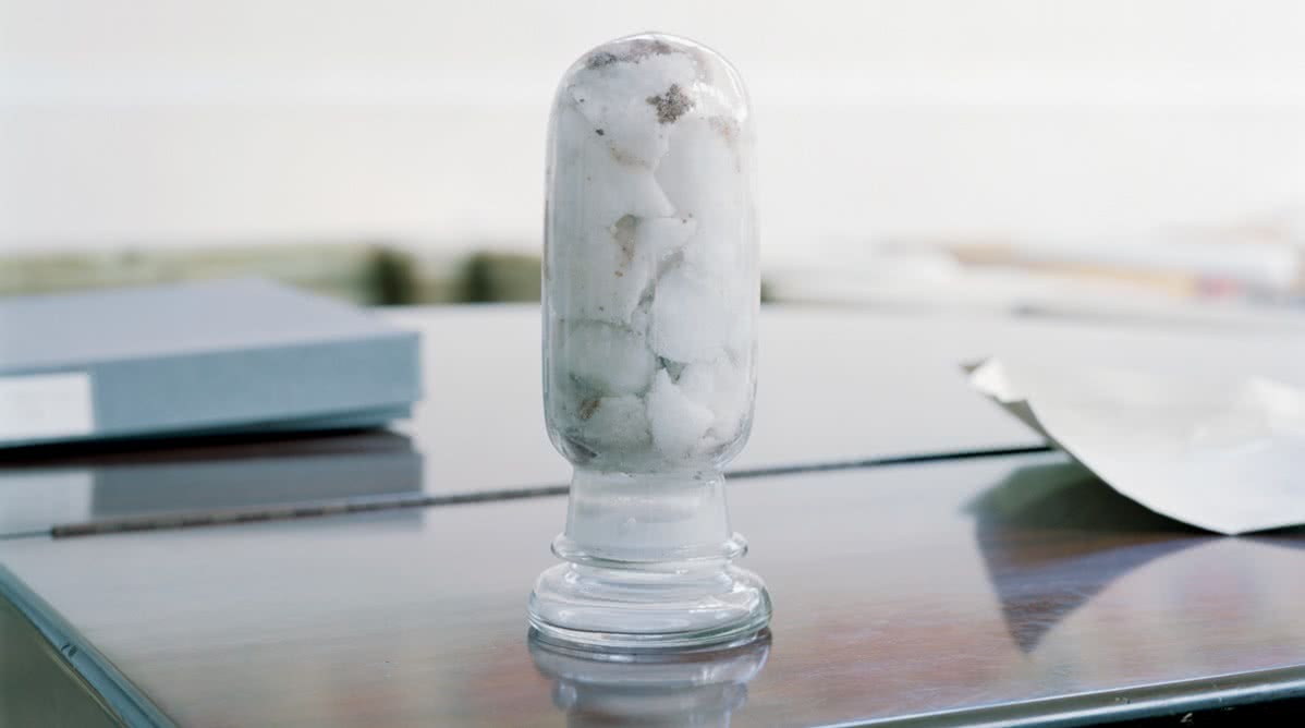 Durante cinco años, Ribas ha dedicado su práctica fotográfica a indagar la historia natural de este mineral extraído en el desierto de Atacama. El salitre o nitrato de Chile es un nitrato sódico que, una vez procesado, se puede usar como fertilizante o como ingrediente para la fabricación de explosivos. Su poder como sustancia y su valor como mercancía residen en su capacidad para cambiar de estado material a inmaterial, para transformarse y ser agente transformador. En esta forma compuesta, el elemento nitrógeno –que constituye el 80% de la atmósfera de la Tierra– puede acelerar o destruir la vida.