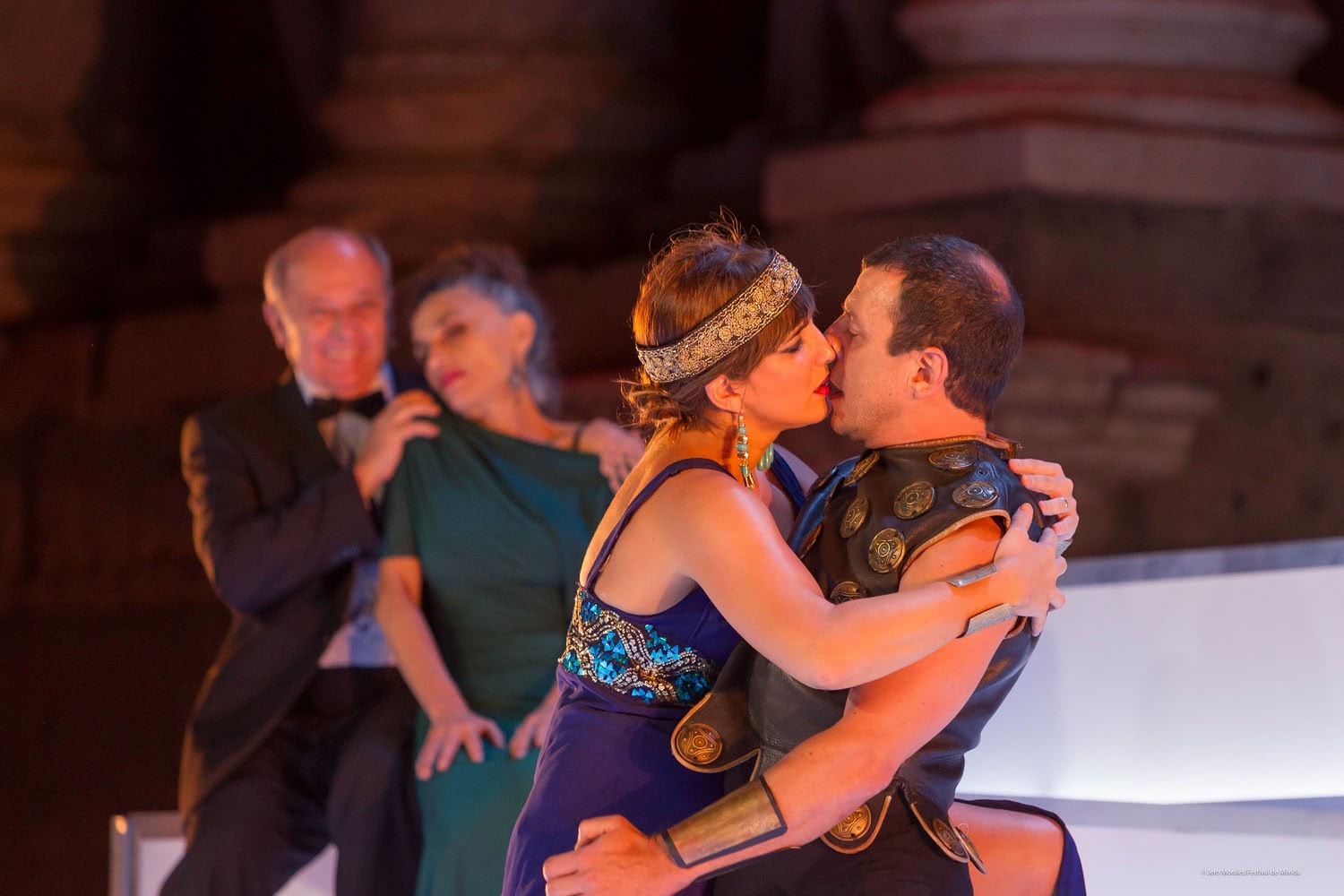 Unas veces rescatan lo que en sus bocas pusieron los poetas, y otras vuelan en libertad por situaciones que la historia ha relatado con mayor o menor verdad. Dos Césares y dos Cleopatras, los eternos y los reales, que se entregan a un apasionante juego, a un combate a cuatro, donde lo que fue, lo que pudo ser y no fue, lo que hubieran hecho de volver a vivir y lo que de ninguna manera quisieran repetir genera un conflicto lleno de humor y emoción.