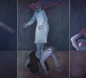 Lo que se anuncia como exposición de pintura no responde pues a las expectativas de visualización y contemplación de un cuadro tras otro. El proyecto expositivo se plantea como concentración de unidades en tres grandes polípticos, dos de ellos a modo de retablos de carácter religioso y social que a la vez interactúan con el tercero, donde se recoge la temática más lúdica y recursiva.