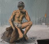 El proyecto de Tiago Baptista (Leiria, 1986) obliga también al visitante a realizar un esfuerzo para obtener una recompensa. En sus obras, la realidad y la ficción se mezclan y se transforman en algo imposible de distinguir. Representa al hombre como un agente pasivo, que acepta los cambios como algo necesario e inmutable, en un mundo por venir y al que no queremos mirar, pero también «se habla de las relaciones que los individuos establecen entre sí y con el espacio», asegura. En sus pinturas hace guiños a la historia de la pintura, por ejemplo a Velázquez.