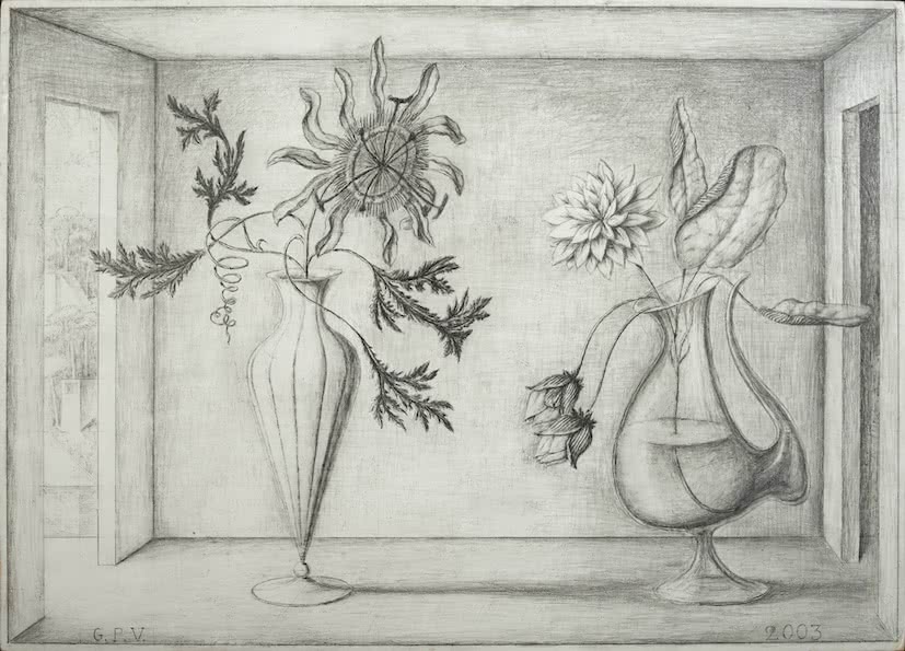 Completan la selección algunos dibujos sobre tabla inéditos, parafraseando con inesperada ironía determinados momentos de la historia de la música pop; una serie de acuarelas y temples de formato lúdico e irregular; y, entre los distintos ejemplos de pintura se exponen algunos de esos recentísimos paisajes con reminiscencias clasicistas, mediterráneas y metafísicas, que le ocupan en la actualidad.
