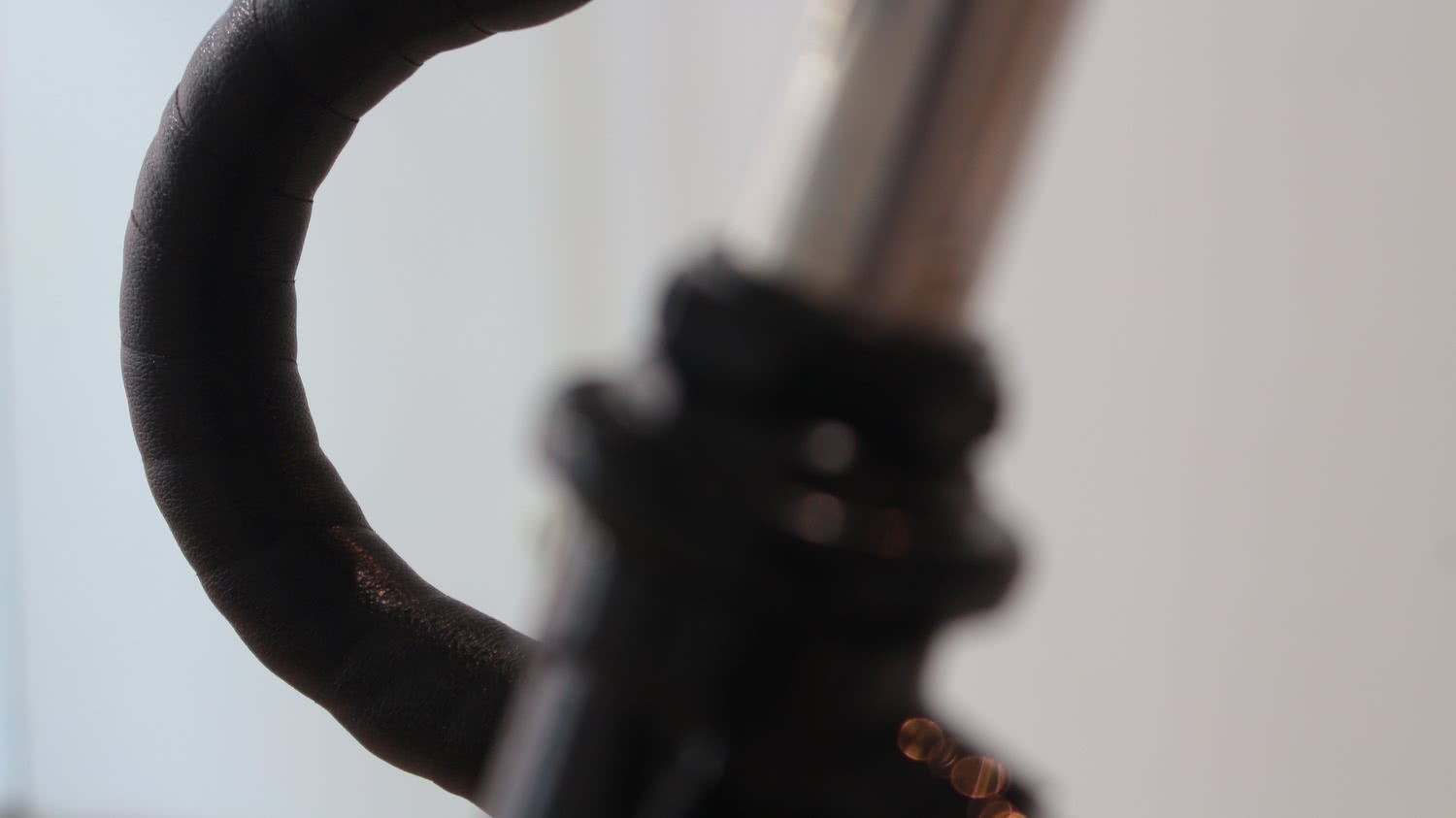 «La escultura, una bicicleta ensimismada en su duplicidad especular; el vídeo con la escena de un secador colgado de su cable que golpea de lado a lado cuando se activa; el andamio, instalado sobre pequeñas peanas de madera, sirve de cuerpo para colgar un pañuelo de tela. Cuatro obras con las que la artista logra crear un presente accidental que increpa al futuro», explica la comisaria.