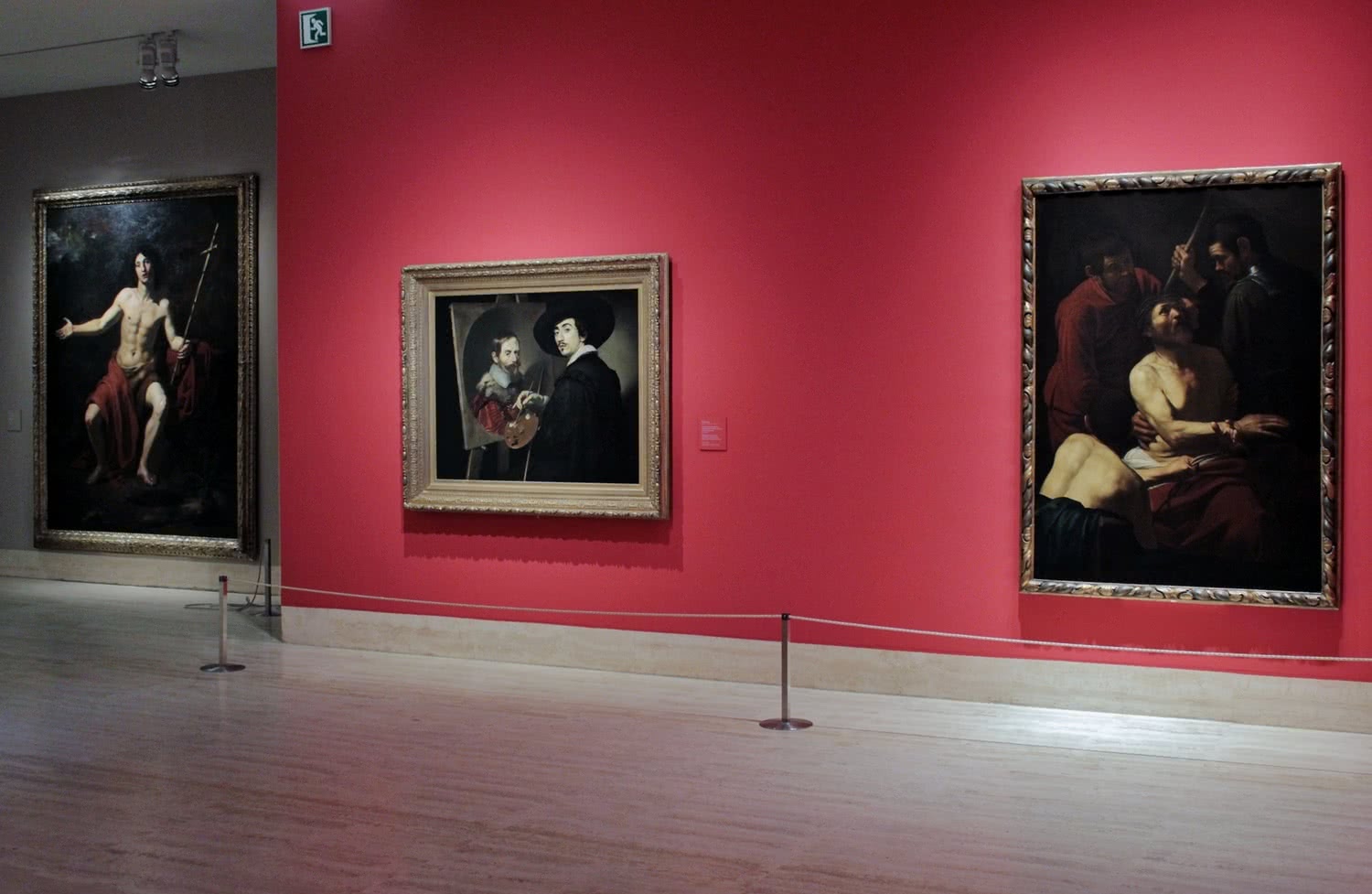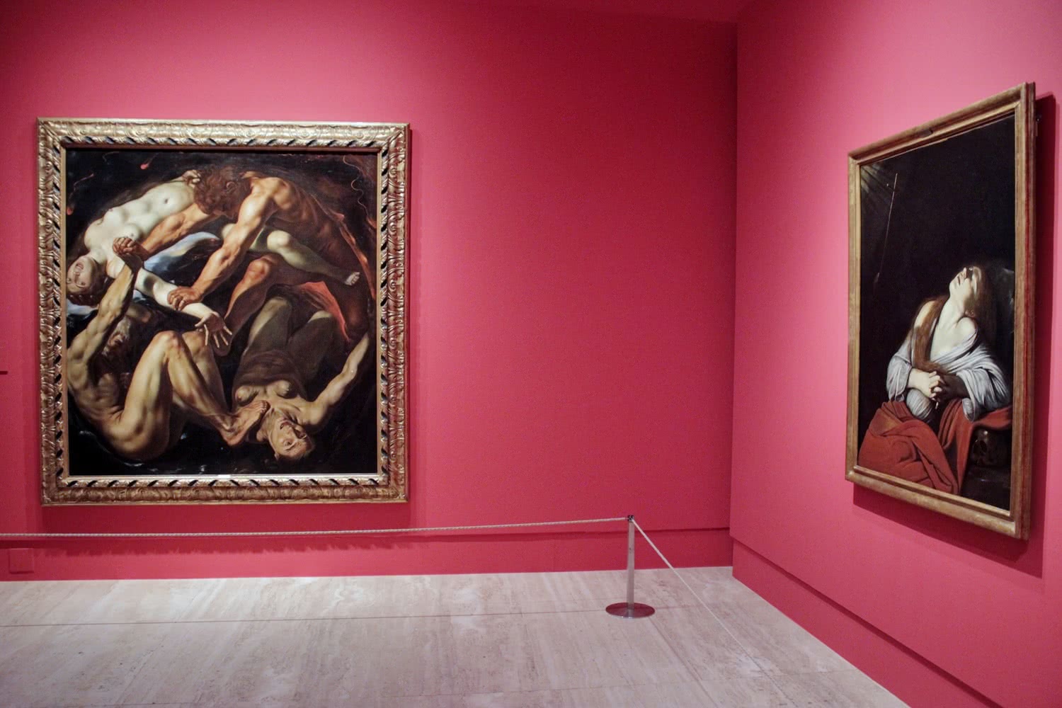 De las 53 obras expuestas, 12 pertenecen al maestro italiano. «Creemos que es un número importante», subraya Borobia. «En este recorrido tenemos de las primeras obras que se le atribuyen en Roma, que estaban destinadas al comercio de arte», y, trazando la evolución estilística de Caravaggio, cuya oscuridad se iba intensificando a medida que avanzaba su carrera, termina con El martirio de santa Úrsula (1610), su última gran obra, pintada poco antes de su muerte».