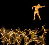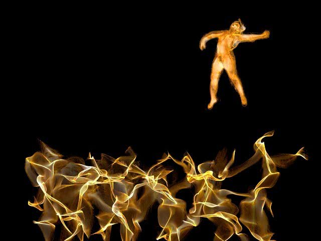La propuesta se articula sobre un eje conceptual y poético que se expresa en el propio título, en el que se sintetizan dos componentes claves para comprender su trabajo: el fuego, imagen de la pasión en la que se desenvuelven las relaciones humanas, cambiantes, dinámicas y, a la vez, atravesadas por la luz más intensa; y la visión de los ojos que cobran vida propia, transposición del flujo que transita de la vida al arte.