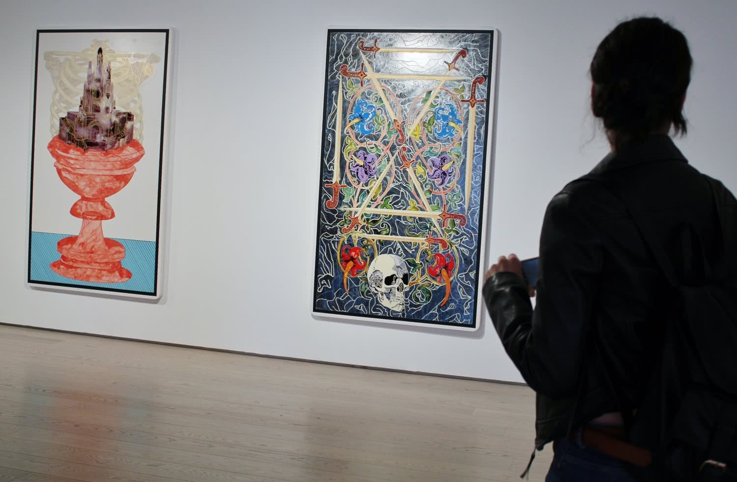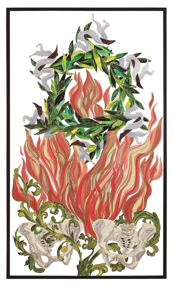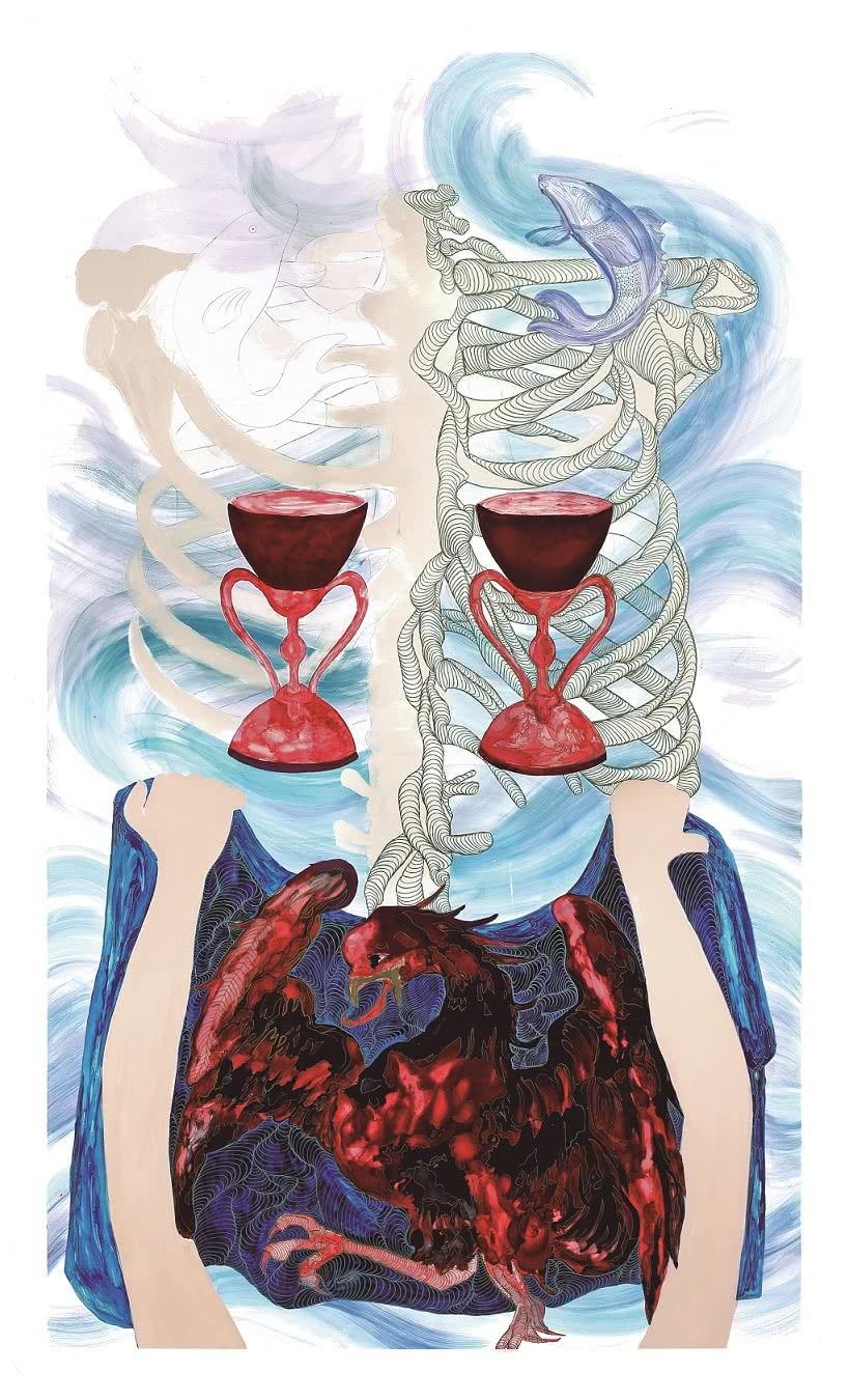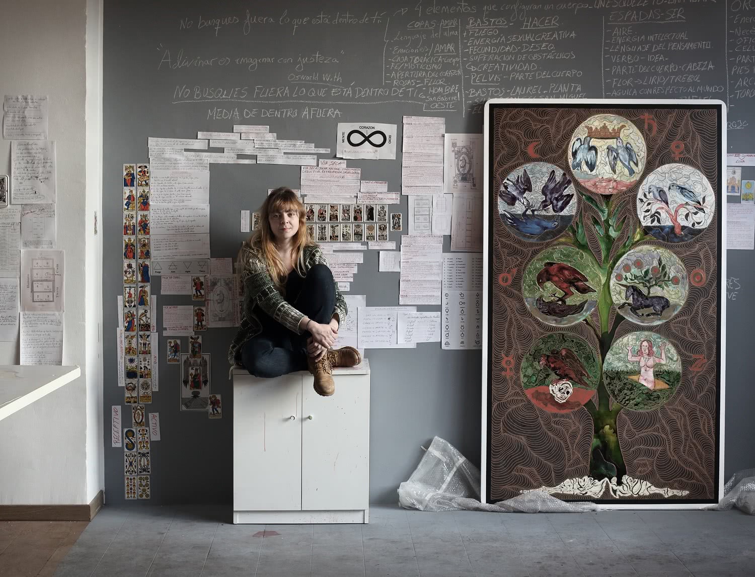 En su interpretación de las cartas del tarot, los símbolos más repetidos son el As, el cáliz, pero sobre todo las copas, que Vargas relaciona con «el lenguaje de las emociones, de ahí que las vincule con el tórax», explica la artista, que continúa, «todas la imágenes conectan de alguna manera entre ellas, de forma que el espectador las relaciona con una baraja».