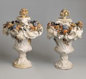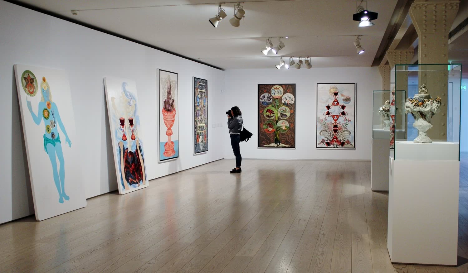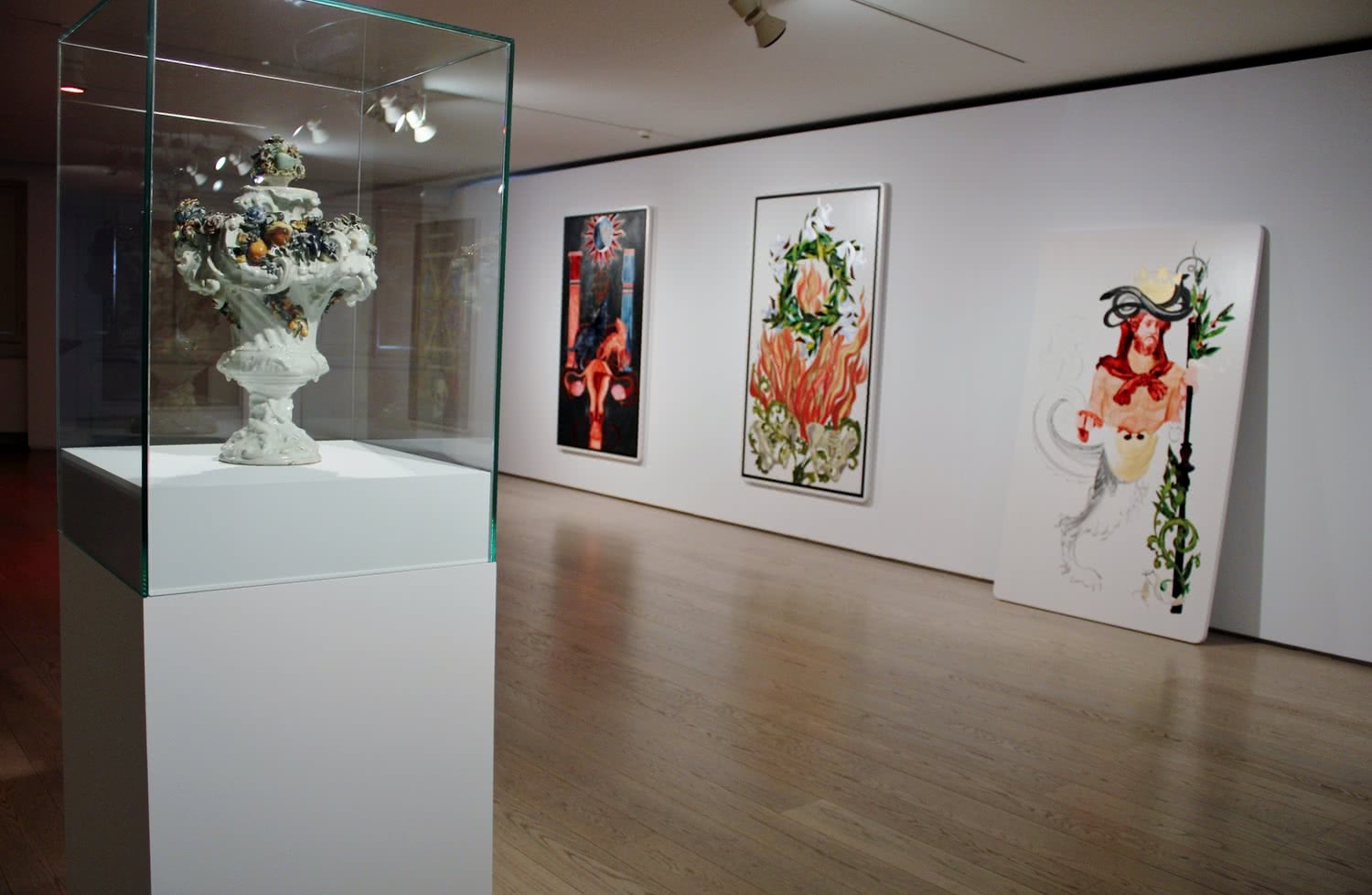 La muestra descubre el particular mundo de la granadina, donde contrapone lo popular y lo culto gracias a un encuentro inesperado. Como anteriores participantes en Conexiones, la artista tenía que buscar en los fondos de la Colección Banco Santander. Allí se fijó en una pareja de jarrones ornamentales de Alcora del siglo XVIII. Dos copas que enlazan con la segunda obra, en este caso de la Colección ABC, un dibujo firmado por a. t. c., siglas tras las que se escondía Ángeles Torner Cervera, que fue portada de Blanco y Negro en noviembre de 1930.