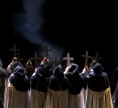 «Ya es conocida mi pasión por Verdi –en referencia a la producción El pimiento Verdi que ha llevado por todo el país– y Don Carlo es para mí una auténtica catedral musical. Sin embargo, la he visto tres veces en el extranjero y las tres he salido enfadado porque mostraban esa España oscura, negra, y es algo que encuentro injusto por la dimensión de Felipe II. Por eso, una de mis disposiciones es hacer algo frente a eso. No quería tocar ni una nota ni una palabra del libreto, pero vi que podía darle otro sentido cambiando la relación entre los personajes», explica el director.