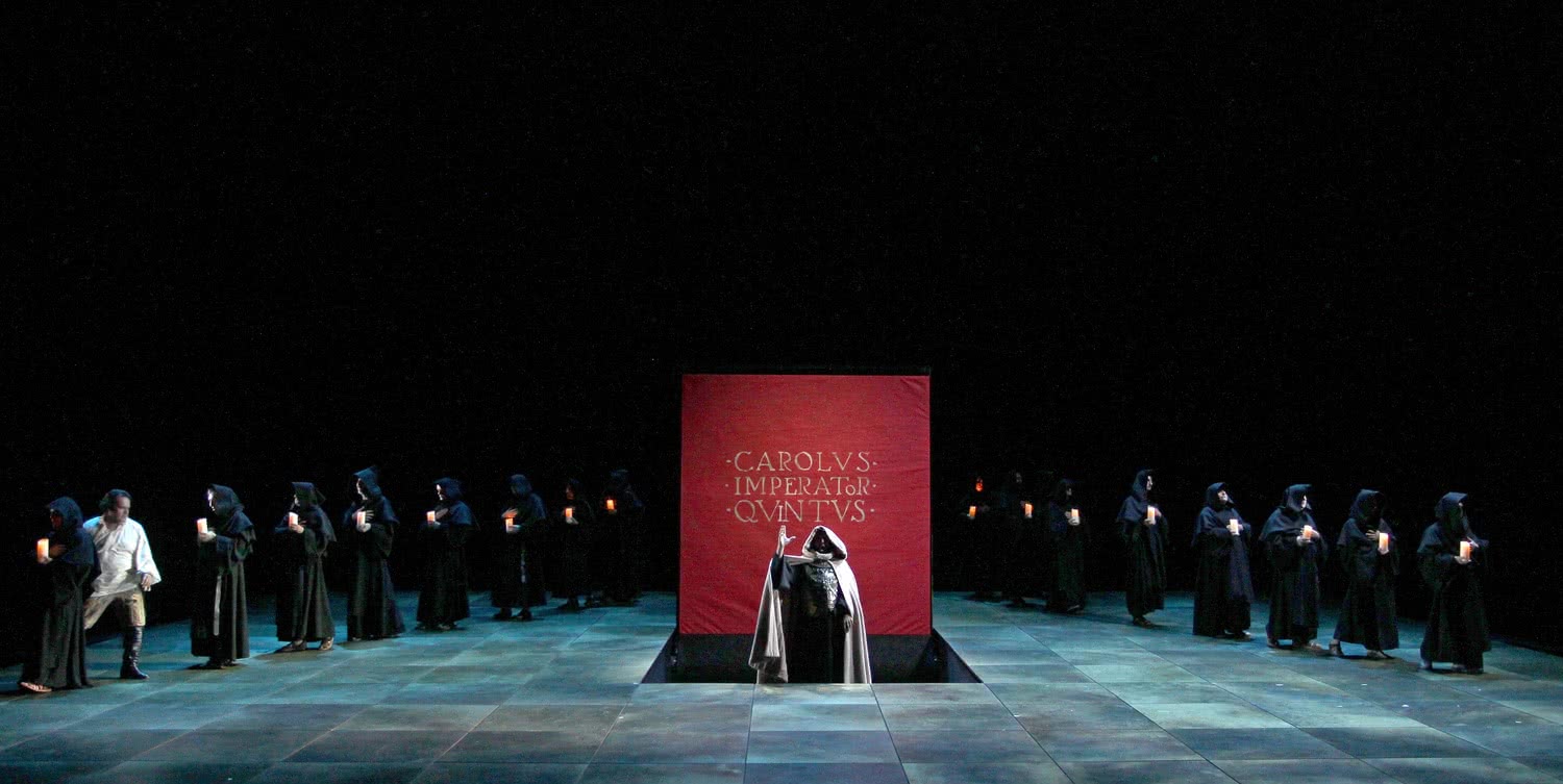 Don Carlo es la vigésimo tercera ópera del compositor italiano de las 26 que compuso. Encargada con motivo de la Exposición Universal de París de 1867, se estrenó en francés ese mismo año, para después sufrir tres revisiones posteriores ya en italiano, en un afán perfeccionista del autor. De todas ellas, Boadella presenta la versión en cuatro actos en italiano de 1883, estrenada en Milán recuperando el dúo entre Felipe II y Don Carlo que transcurre después de la muerte de Rodrigo y escrito para las versiones de París 1866/67 y Nápoles 1872.