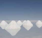 »Común a ambas zonas es su carácter desértico y la inmensa soledad que quería transmitir», explica el fotógrafo. El Salar es el mayor desierto de sal del mundo. Con una extensión de 12.000 kilómetros cuadrados, se encuentra a 3.600 metros de altura sobre el nivel del mar y no muy lejos de los desiertos andinos, los cuales están a casi 5.000 metros de altura.