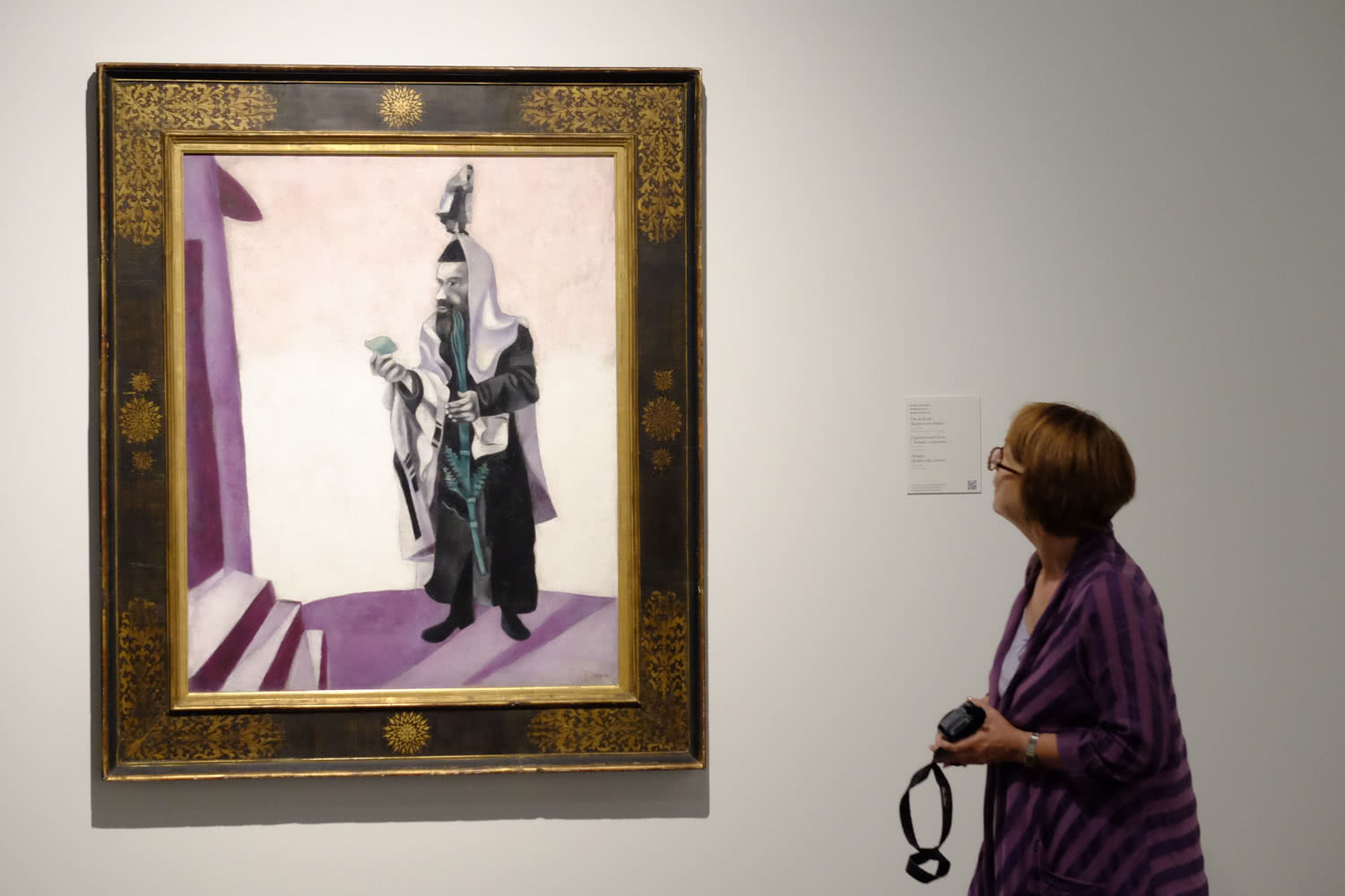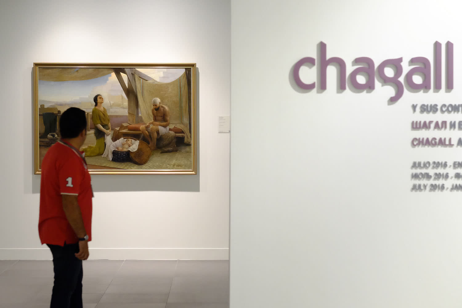 Chagall se hizo como artista en San Petersburgo y floreció en París, pero nunca perdió la conexión con Vitebsk, su ciudad natal, ni con la comunidad judía en la que creció. Allí volvió, al estallar la Primera Guerra Mundial, para casarse, y allí permaneció durante la Revolución. Esta exposición recupera una muestra de su trabajo durante los años parisinos y los posteriores de retorno en Bielorrusia, poniendo su obra en relación con la de otros artistas judíos como Robert Falk, Nathan Altman o Vera Pestel, junto con objetos de artesanía popular que ayudan a evocar aquel mundo que la barbarie alemana borró del mapa.