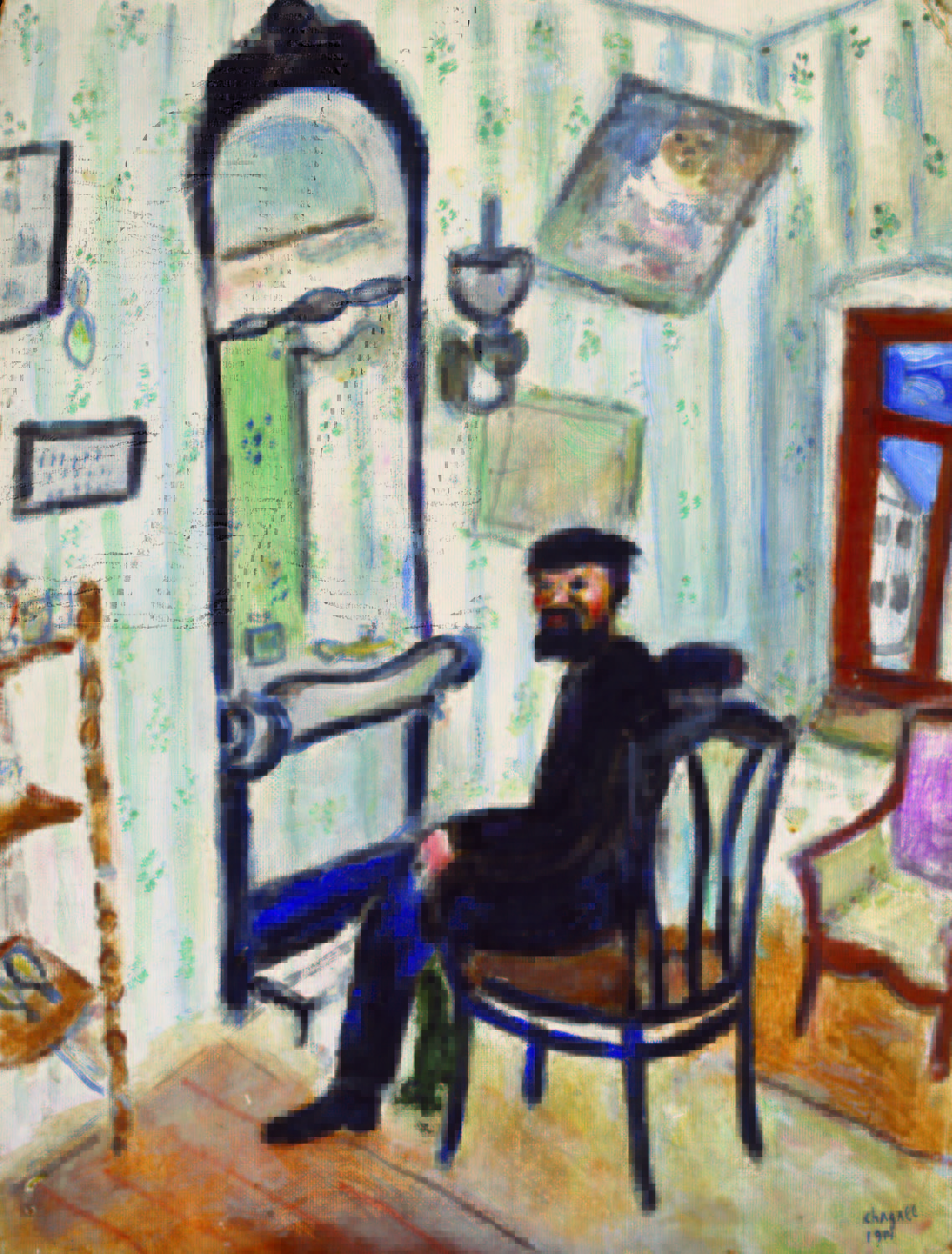 Para Chagall, la vida nunca fue un monótono e idéntico discurrir de tiempo con una serie de acontecimientos recurrentes. Zambullendo la vida en la atmósfera de sus fantasías, Chagall transfiguraba lo visto y conocido hasta el punto de que transformaba lo representado en un cuento maravilloso. Incluso en los retratos de sus parientes más cercanos (hermanas, hermano y padre) añadía a sus semblantes individuales algo que los convertía en cuadros temáticos. A pesar de la intención original en cuanto al género de sus cuadros (retrato, paisaje, naturaleza muerta, escena costumbrista), en ellos se funden realidad y fantasía, desapego y experiencia emocional directa.