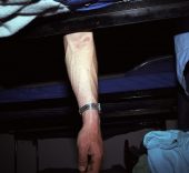 «La exposición comienza en Reino Unido, recordando, con las imágenes de Chris Killip o de Graham Smith, una exposición que en los 90 el Museo de Arte Moderno de Nueva York realizó sobre la fotografía inglesa de esta década», explica Alexis Fabry. Estas fotografías remiten a la Inglaterra del norte, una zona que no conoce la prosperidad prometida a las clases medias de la era thatcheriana. El comprometido Smith retrató a sus conocidos en su ciudad natal y reivindica lo documental, convirtiendo lo íntimo en público.
