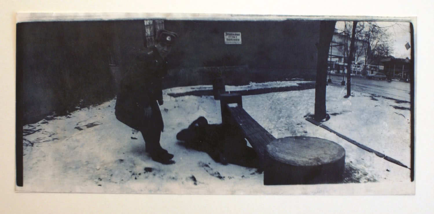 Después vino la serie de 1993 At Dusk (Al crepúsculo), impresa en azul y capturada con una cámara panorámica de fabricación local. En este trabajo registra el paso de una humanidad ruinosa por las calles de Kharkov, marginada por la transición en los últimos momentos de la era soviética. Otro autor de este momento es Sergey Chilikov, que retrata a las mujeres de un pueblo en un baldío, al pie de un camión del ejército, que caminan en el lodo de un mundo desmoronándose. El visitante también contará con la mirada de Andrey Chezhin y Vladimir Kupriyanov, que ponen la mirada sobre nuevas preocupaciones en las que el pasado no pasa.
