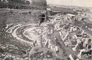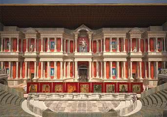 Entre los documentos expuestos se incluye una recreación de cómo debió ser realmente el frontis del Teatro Romano de Mérida en la época de su construcción. Gran parte de la vida de Mérida discurre en la actualidad en torno a su monumental Teatro Romano. Pero así ha sido a lo largo de la historia de la ciudad. Este es el edificio teatral más importante de la Península Ibérica y está, sin duda, entre los más señeros de Hispania.