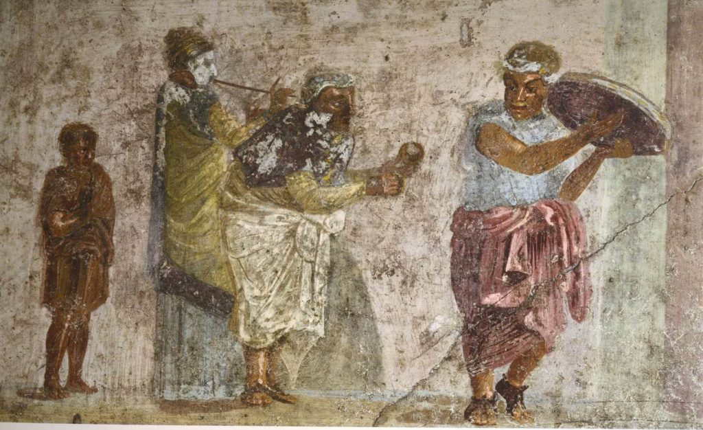 Entre las piezas que se muestran, 14 total, figuran algunas máscaras teatrales monumentales de mármol que decoraban edificios relacionados con el teatro y máscaras teatrales de terracota. También la conocida estela de Lutatia Lupata, monumento funerario en forma de templete con joven mujer tocando un instrumento de cuerda, del tipo pandurium.