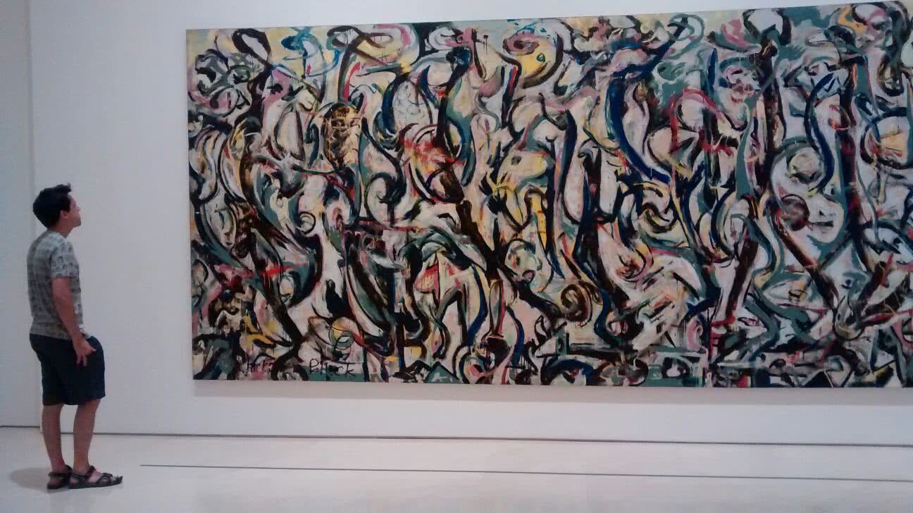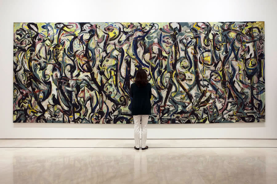 Jackson Pollock vio por vez primera el Guernica de Picasso en 1939 en la exposición de la Galería Valentine y más tarde, en noviembre de ese mismo año, en la retrospectiva dedicada a Picasso en el Museo de Arte Moderno de Nueva York (MoMA), en donde desde 1944 permaneció en depósito hasta su traslado definitivo a España en 1981.