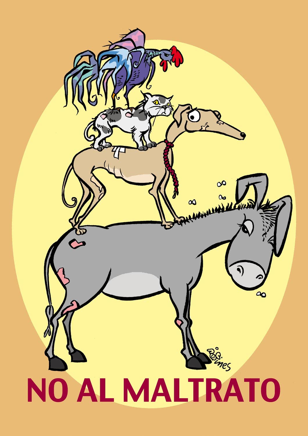 La muestra plantea la reflexión sobre los derechos de los animales y el comportamiento humano hacia ellos a través de 82 viñetas de 74 autores procedentes de 24 países diferentes. Las ilustraciones abordan temáticas como la contaminación y el cambio climático, las peleas de animales, los zoológicos o los circos, el abandono, la caza o la explotación animal, y entre ellas se encuentran trabajos de Forges (director técnico del IQh), Ricardo, Malagón, Gallego & Rey o Romeu.
