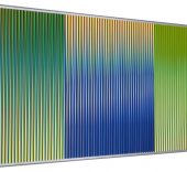 La muestra Cruz-Diez ocupa el espacio recientemente inaugurado en la madrileña calle Blanca de Navarra y la sala colindante. Allí se reúnen obras de reciente creación de colores muy vivos en las vistas laterales que se van abriendo a otras tonalidades según el espectador recorre las salas.