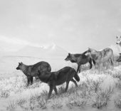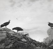 Por otro lado, Dioramas (1976-2012) reúne fotografías de tableaux de paisajes prehistóricos tomadas en su mayoría en el Museo de Historia Natural de Nueva York. Son imágenes de animales embalsamados y humanos primitivos que parecen engañosamente reales, con las que el artista logra poner en entredicho nuestra percepción de la realidad y la fiabilidad de la fotografía como prueba; muy buenos ejemplos del interés de Sugimoto por situar al espectador en la frontera entre lo animado y lo inanimado, al dotar a sujetos y paisajes sutilmente extraños a la imaginería contemporánea de una verosimilitud desconcertante.