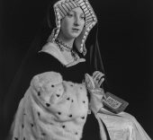 Por último, el visitante se encuentra con Portraits [Retratos] (1994-1999), donde se muestran imágenes de estudio de personalidades históricas moldeadas en cera, pertenecientes al famoso Museo de Madame Tussaud. La pieza principal retrata al rey Enrique VIII con sus seis esposas, pero también incluye figuras políticas y religiosas más recientes como Yasir Arafat o Juan Pablo II. Son obras creadas a partir de montajes muy calculados: en su estudio, Sugimoto colocó las figuras de cera contra un fondo negro para conferirles una apariencia arquetípica y engrandecida.