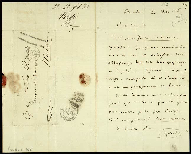 La muestra de este Archivo es esencial para entender la génesis del género de la ópera. Junto a los documentos que cuentan la génesis de la ópera, como fotografías, cartas, figurines y bocetos escenográficos, se presentan en el Teatro Real las huellas de la “máquina” productiva y comercial que estaba al servicio de la realización de la obra: el contrato con Verdi y una partitura autógrafa completa, y los documentos que dan fe del papel organizativo y empresarial de la editorial Ricordi, promotora del éxito de Verdi a escala internacional.