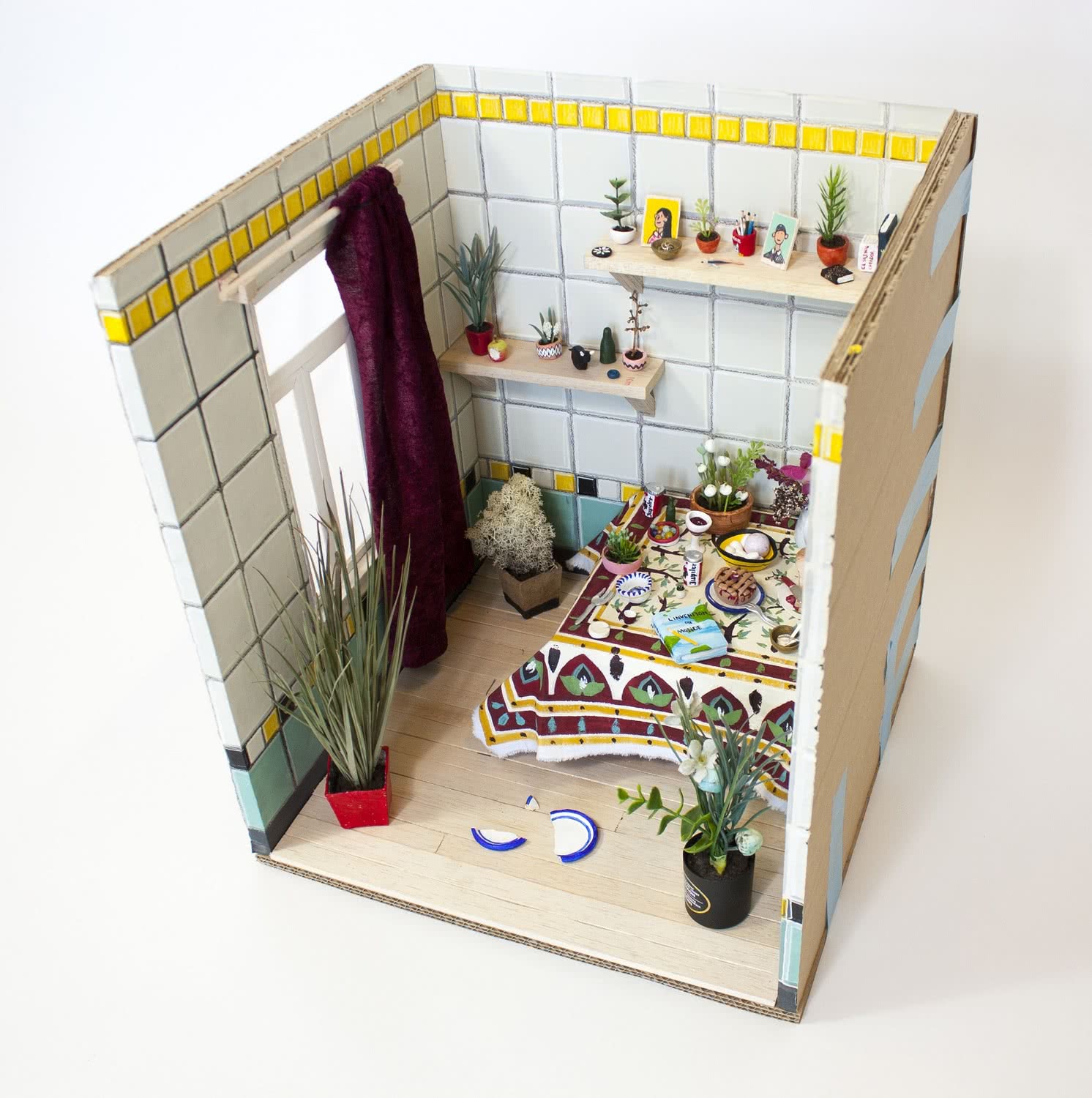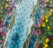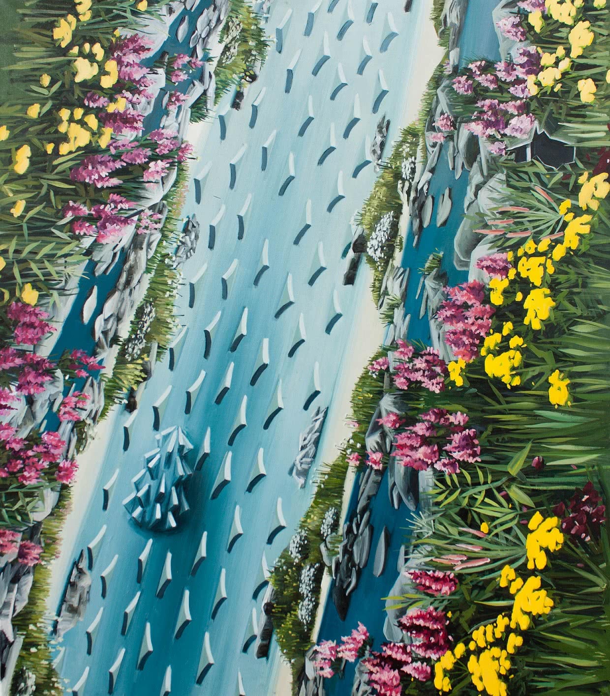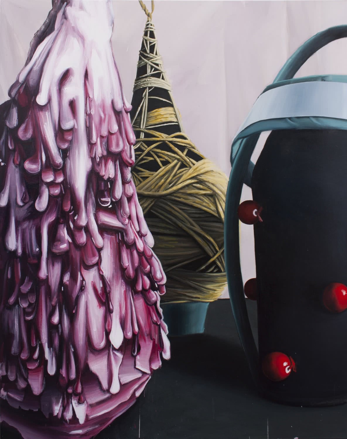 Iranzo utiliza materiales que funcionan a modo de refugio, de protección frente a algo profundamente íntimo. Agua, espejos, fibras textiles, naturalezas recortadas y estructuras rígidas indescifrables se usan como camuflajes. La joven pintora tiene una mirada que transita de lo melancólico a la carcajada, congestionada e impredecible.