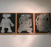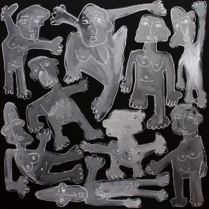 La soledad, el miedo, el anonimato, la incomunicación, la alienación mediática, los homenajes étnicos, la ciudad… subyacen como lecturas más o menos ocultas entre decenas de ejemplos de pintura fundamentalmente lúdica, en pequeño formato. Son composiciones habitadas por un horror vacui permanente. Bajo su mirada emergen jeroglíficos, crucigramas, gestos aparentemente incontrolados o voluntariamente precipitados. Son composiciones efusivas, comunicativas y sinceras.