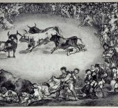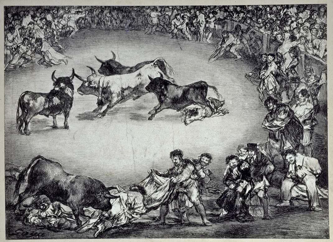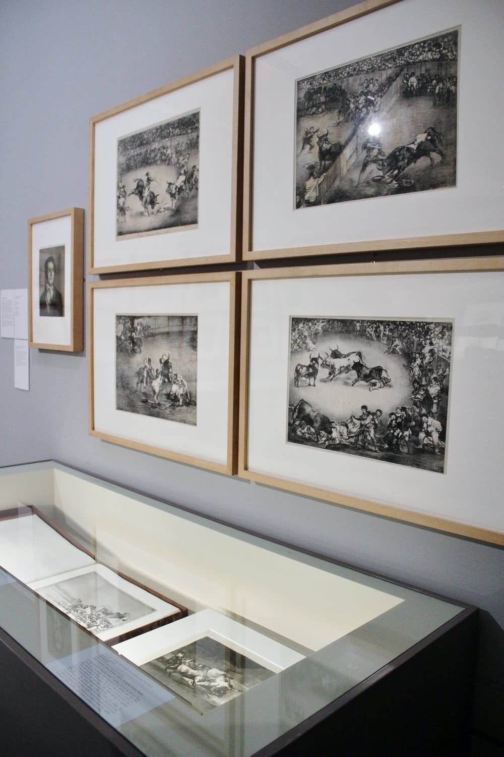 La segunda edición de la Tauromaquia o Colección de las Diferentes Suertes y Actitudes del Arte de Lidiar los Toros se presenta junto a los Toros de Burdeos con el fin de ilustrar dos enfoques diferentes: el arte de la lidia y la fiesta popular. Mención especial requiere la exhibición de las 13 pruebas de estado de los Disparates fechadas entre 1815 y 1816, estampas realizadas por Goya cuando aún está inmerso en el trabajo de creación sobre la lámina.
