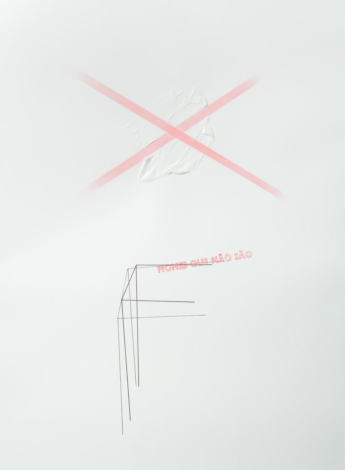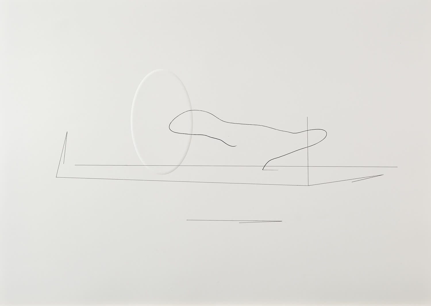Sus dibujos, la mayoría en tres dimensiones, retan los límites del trazo en una búsqueda por no quedarse en un solo plano. Son, más bien, objetos de papel que muestran líneas e imágenes que continúan, se desdoblan y penetran en diversos planos en una investigación artística por aquello que transgreda la dimensión de lo que se llama “figuras”.