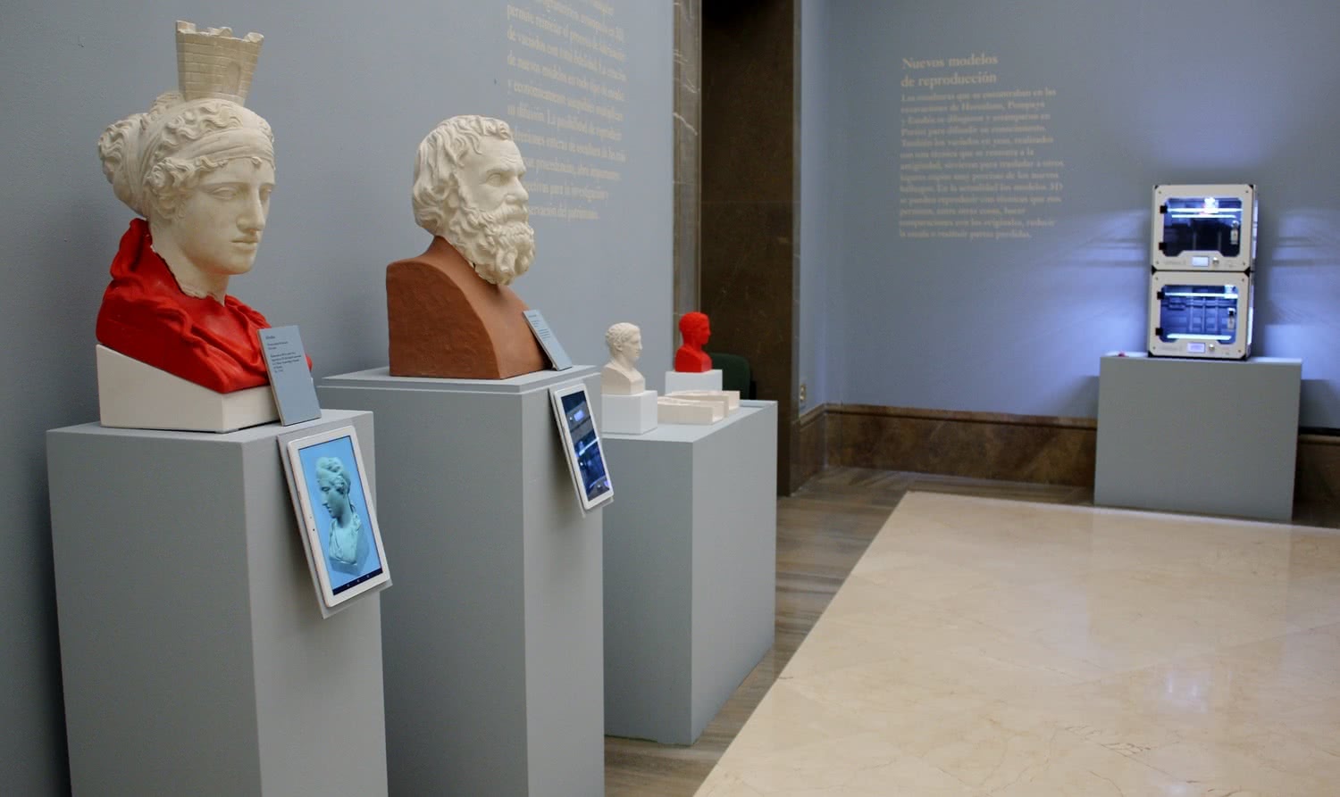 La tres sedes de la exposición están interconectadas en tiempo real mediante streaming y emplean medios técnicos de realidad virtual, realidad aumentada y fotografía esférica. El público puede visitar de esta forma las tres sedes, además de ver y manipular obras en 3D con una altísima resolución y de hacer impresiones tridimensionales.
