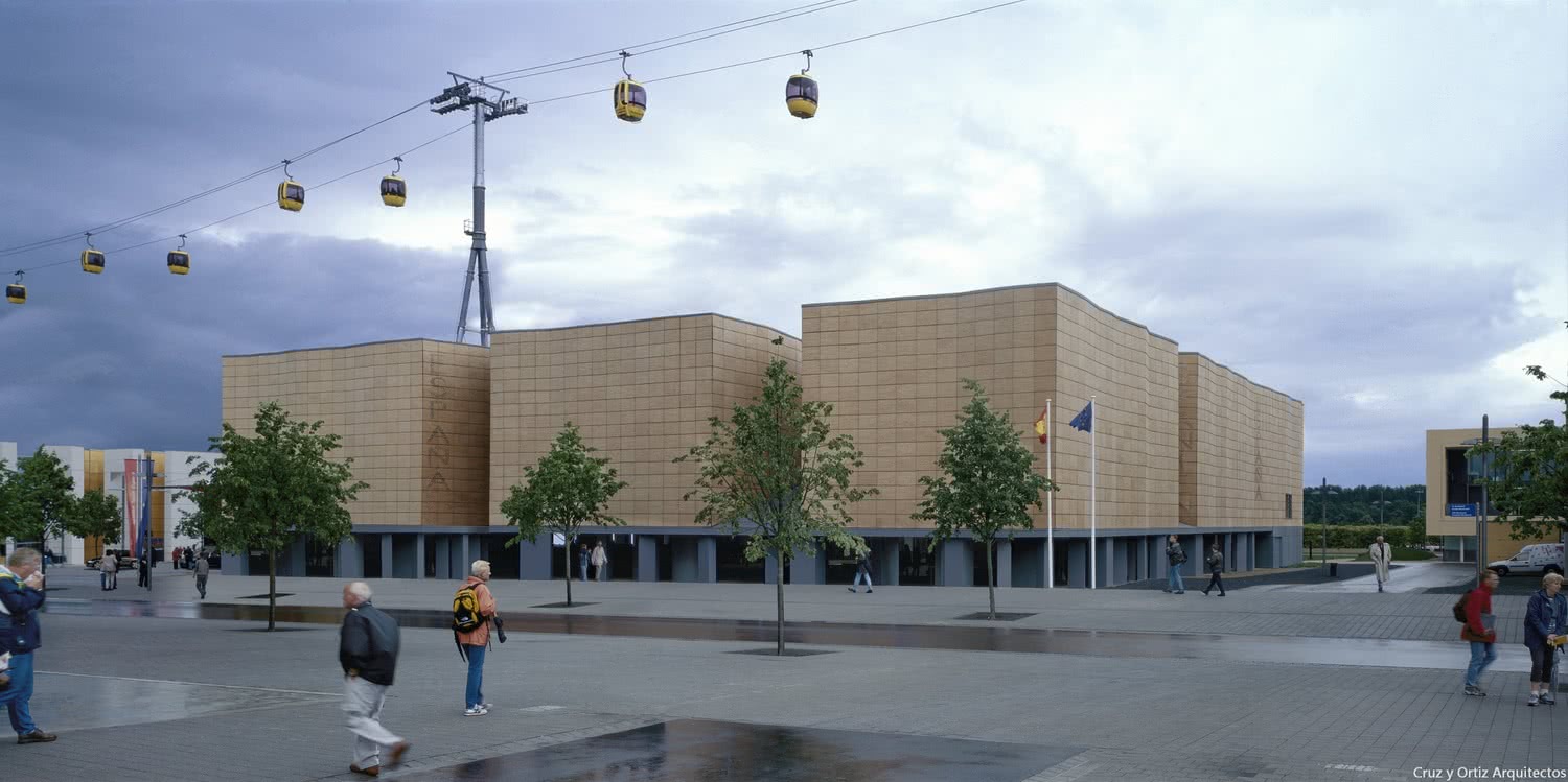 Por otro lado se puede ver el Pabellón de España para la Expo2000 de Hannover. La primera impresión que causa este pabellón es la de un gran bloque de corcho, cuyas fachadas se ven perturbadas por una profunda hendidura. El objetivo final de esta construcción es causar una impresión duradera en la memoria del visitante. Entre los materiales que se exponen en el Museo ICO el visitante se encuentra con una selección de fotografías de José Manuel Ballester, Premio Nacional de Fotografía 2010.