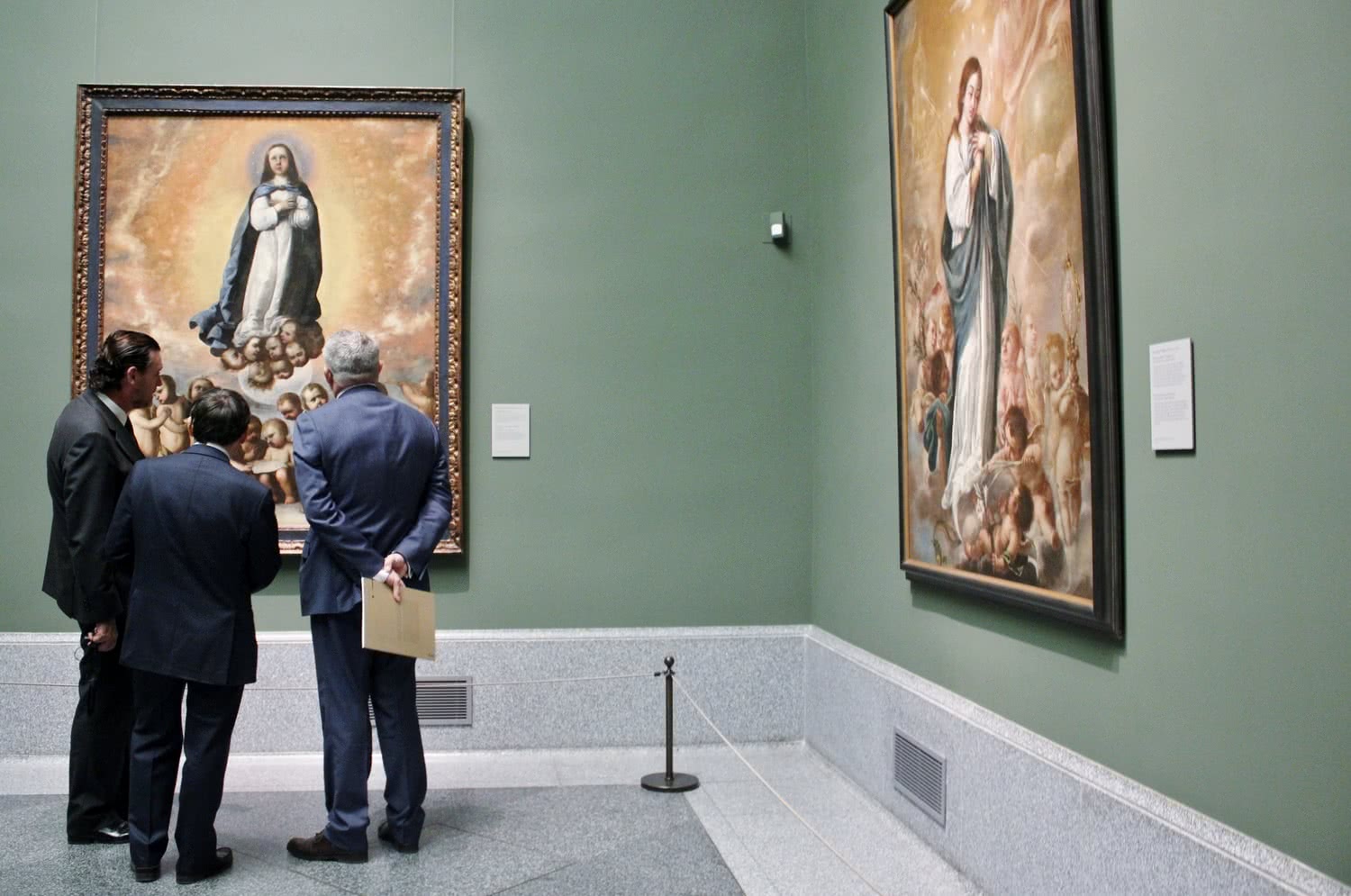 Inmaculadas. Donación Plácido Arango Arias, que se puede visitar hasta el 26 de febrero, reúne seis obras fechadas entre las décadas de 1630 y 1680 que permiten hacer «un recorrido por la representación de la Inmaculada Concepción a lo largo de 50 años», destaca Portús. La representación de este tema mariano contó con dos versiones: la primera subraya la intimidad, el recogimiento y la concentración, mientras que la segunda presenta fórmulas barrocas mediante composiciones dinámicas y coloristas.