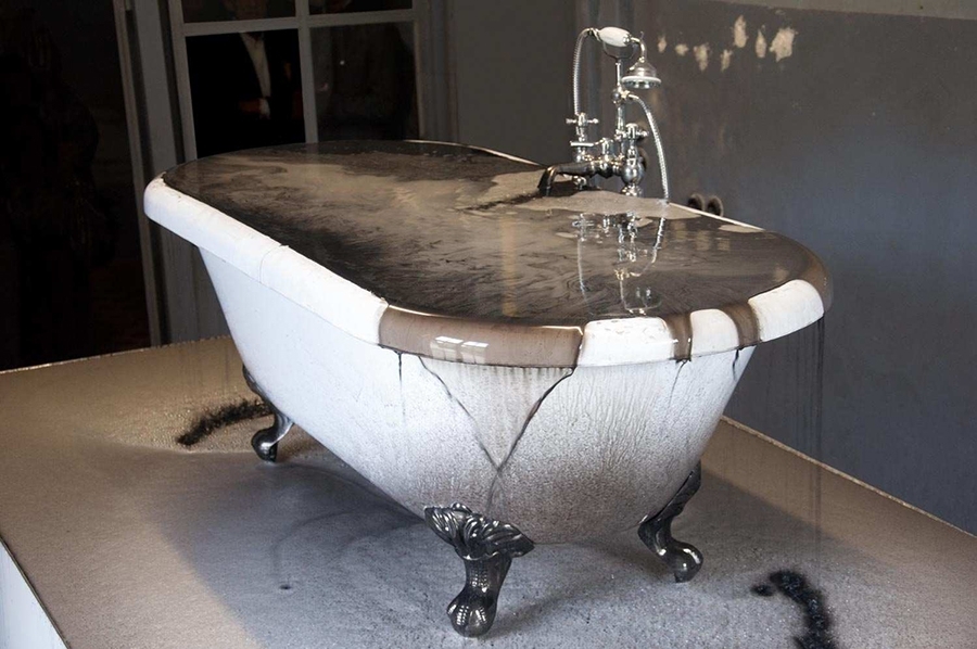 La muestra presenta la escultura acústica y olfativa Bajo el horizonte (Under the Horizon), en la que, partiendo de un objeto del espacio doméstico como una bañera, el horizonte se convierte para el público en una exploración de carácter horizontal a través del sonido y del olor. “La inconmensurable línea del horizonte –indica Maciá– se ha usado para navegar de un lugar a otro, una línea donde la visión se calibra”.