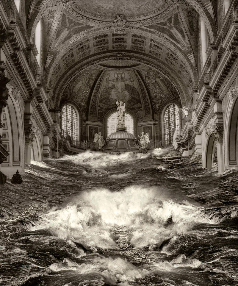 En Nave, las luces de la iglesia siguen ardiendo sobre el nivel del agua, a punto de ser engullidas, son la evidencia de un éxodo humano muy reciente. Toda esta destrucción de la cultura por parte de la naturaleza debería de ser aterradora. Sin embargo, la belleza del extraordinario monumento de Wren a la gloria de Dios y a la esperanza humana y las grandes masas de energía de las mareas hacen que las imágenes sean emocionantes.