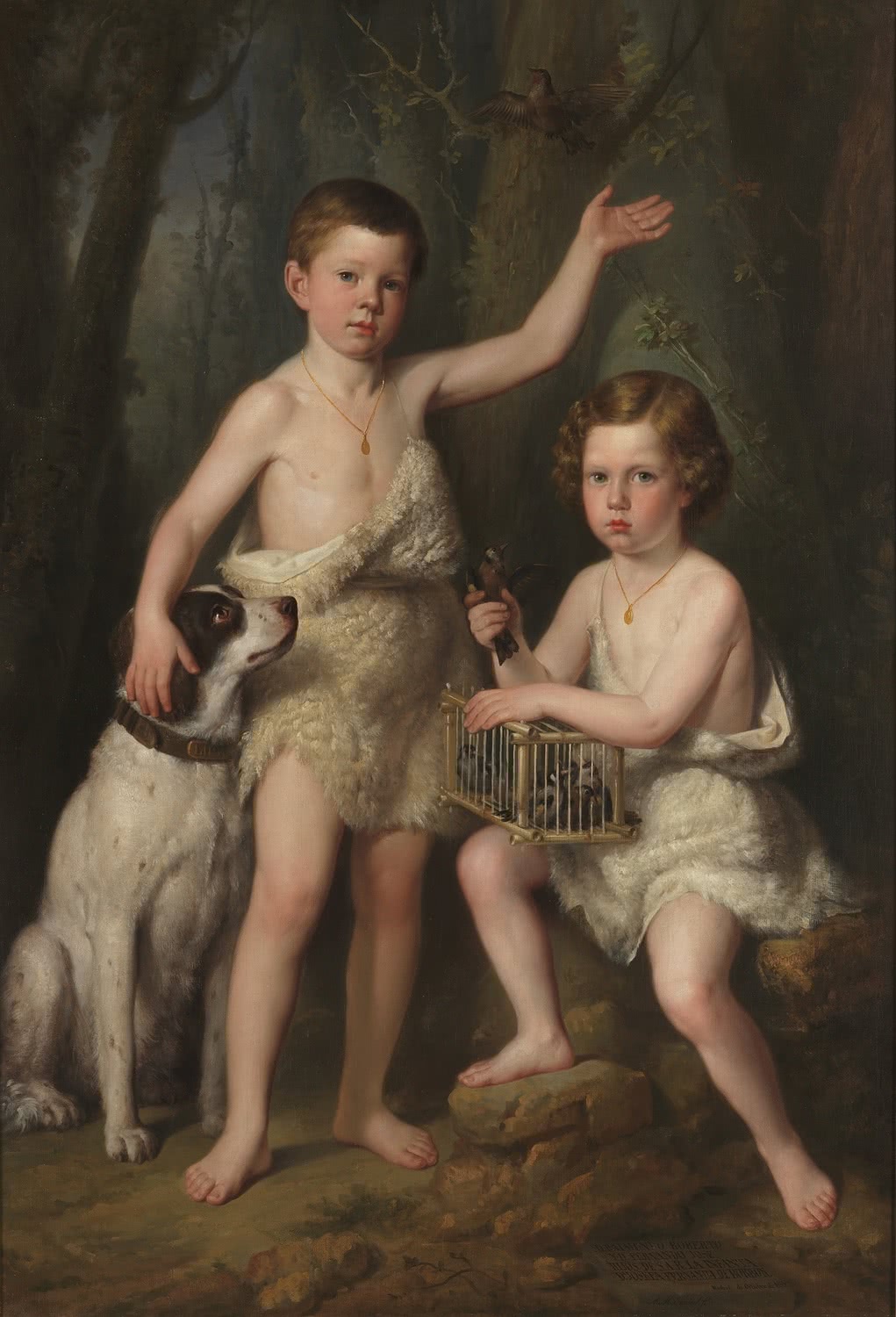 «Entre la selección destaca el retrato de Raimundo Roberto y Fernando José, hijos de S.A.R. la infanta Josefa Fernanda de Borbón, obra de Antonio María Esquivel adquirida recientemente y que resulta realmente singular en el panorama de la pintura romántica», explica el comisario. Se trata una obra apenas conocida que se presenta por primera vez al público tras su adquisición en 2016. Una pieza singular en el panorama de la pintura romántica que encarna por sí sola los ideales liberales acerca de la educación libre defendida por el padre de los niños retratados, el escritor y periodista cubano José Güell. Los protagonistas aparecen representados como pastores arcádicos, vestidos solo con pieles y convertidos en la proclama del liberalismo por su acción de poner en libertad a unos jilgueros. Ejecutado con un claro sentido escultórico, propio de los últimos años de la trayectoria de Esquivel, este retrato fue elegido por el artista para tomar parte en 1856 en la primera de las Exposiciones Nacionales de Bellas Artes.Adquisición singular