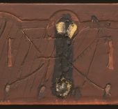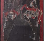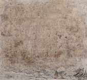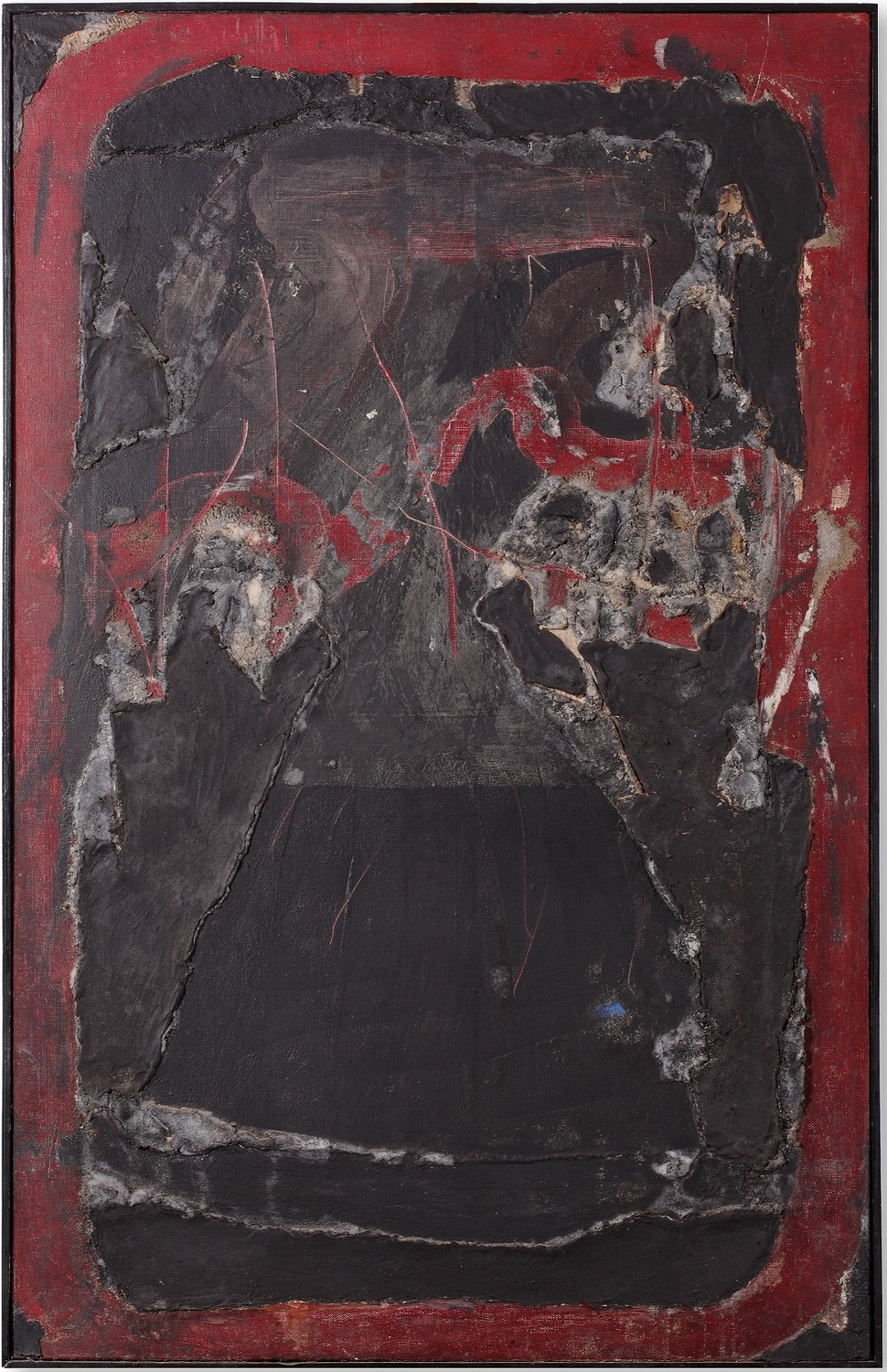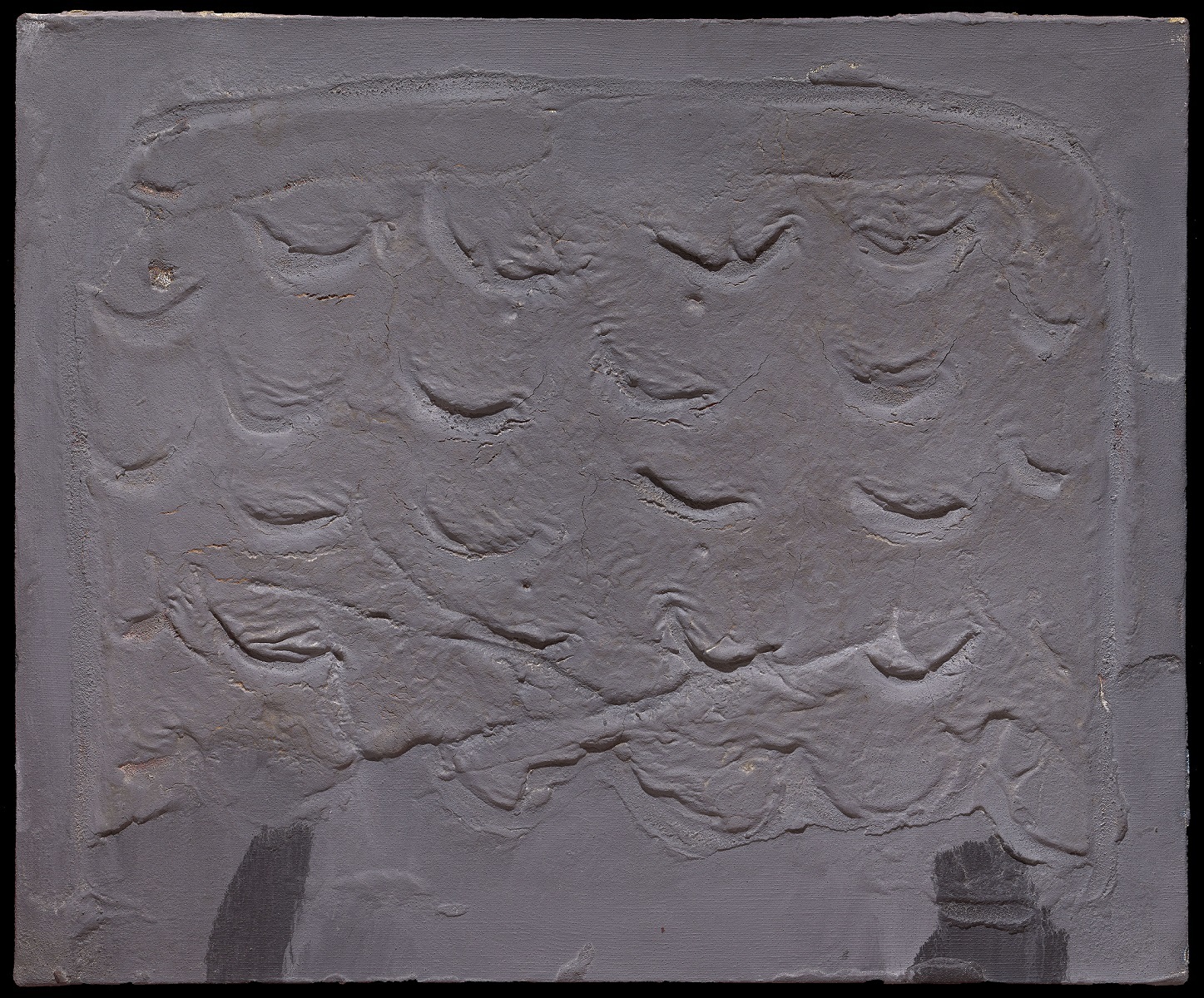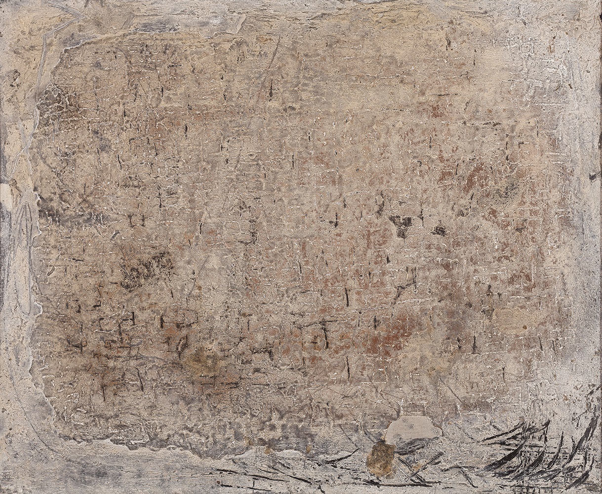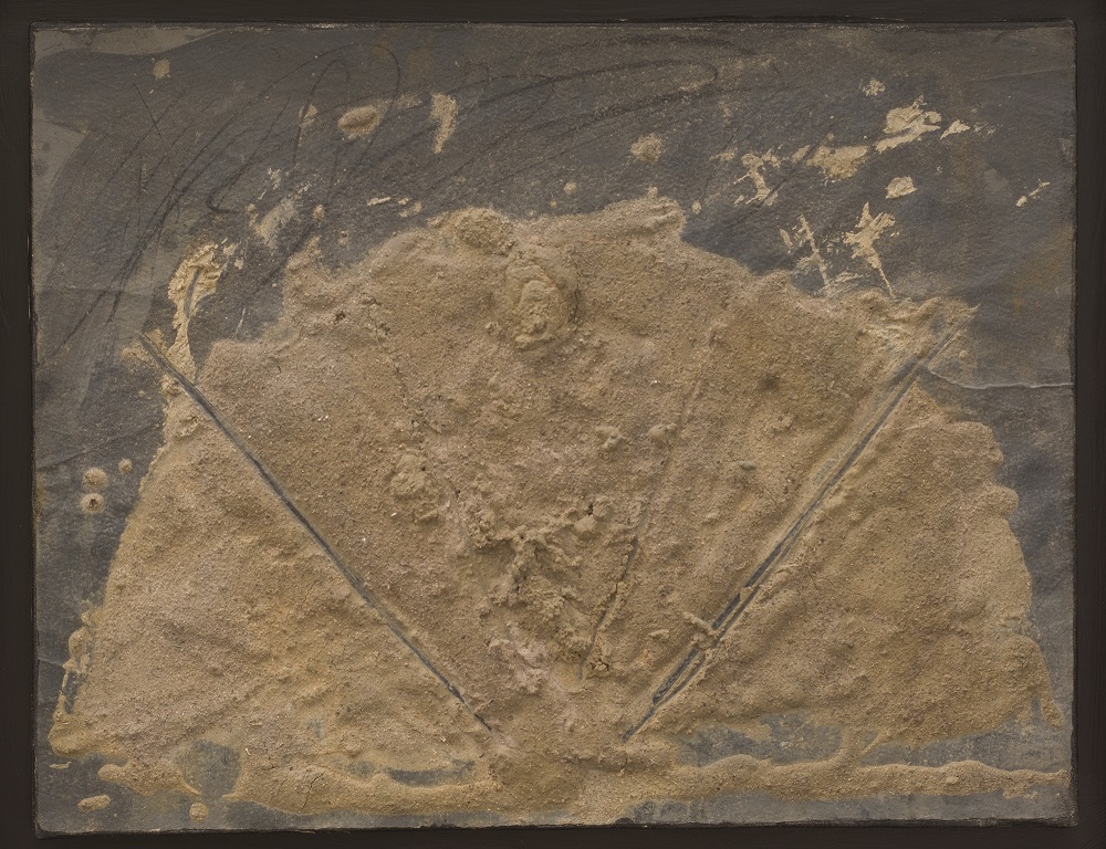 A principios de la década de los 50, tras superar su etapa figurativa y magicista-surrealista, la obra de Tàpies se fue perfilando paulatinamente hacia la abstracción. En 1952 conviven aún ambas vías, y en 1953 aparecen ya los primeros atisbos de elementos táctiles, que vienen a sumarse a lo puramente visual. Sin embargo no es hasta 1955, primera fecha que recoge esta exposición, que materiales ajenos a la práctica de la pintura, como arenas o cemento, se convierten en actores principales de su obra, creando la estética que le caracteriza. Se abre en ese momento una de sus etapas más interesantes, en las que realiza sus grandes cuadros matéricos y que dura hasta 1970, momento en el que comienza a introducir objetos cotidianos en sus obras y a realizar esculturas y ready-mades cercanos al Arte Povera.