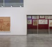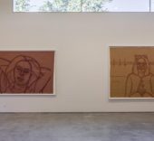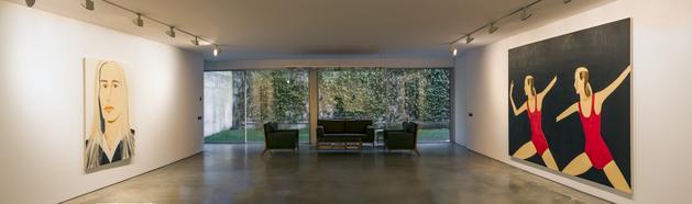 En la muestra organizada por la Galería en la primavera de 2014 para presentar su serie Red Hat se incluyeron las cuatro fases del trabajo del pintor: estudios al óleo sobre tabla, dibujos a carboncillo, cartones para trasladar la composición a la superficie del lienzo antes de aplicar los colores y las pinturas finales. Cartoons propone ahora un recorrido por su trayectoria de las cinco últimas décadas a través de ejemplos de los dibujos que ha empleado en pinturas tan importantes como Eleuthera (1984), Big Red Smile (1993-94), Visor (2003) o Bathing Cap Ada (2010).