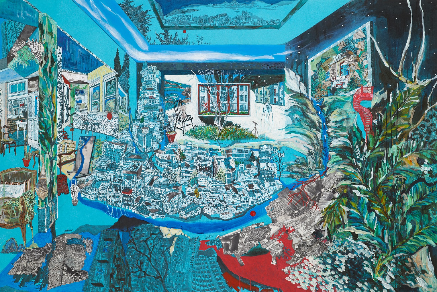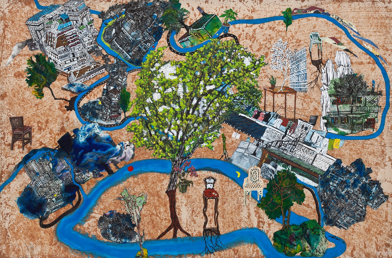 «Cuando describo un paisaje, trato de recrear las personas y situaciones con una descripción realista. Creo un nuevo espacio situacional a través de un grupo de individuos no especificados de nuestro tiempo. Es por eso que uso escenografías prestadas, un método tradicional de la pintura coreana. Cuando los artistas retratan el mismo escenario, ninguna pintura se ve igual, porque cada artista tiene un estilo diferente de expresar las líneas. En un camino ventoso me gustaría retratar un objeto con un lenguaje lineal, mi propio estilo, y diferentes perspectivas sobre el tiempo y el espacio”, explica Park Younggil.
