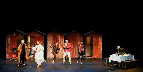 Como explica Jemmet, en Shake, «cinco actores interpretan todos los personajes de la obra y cinco cabañas de playa evocan una costa perdida, olvidada o imaginada. Las cabañas son a su vez vestuarios y cabinas de títeres donde los artistas preparan sus disfraces para la siguiente escena. Y, todo el tiempo, Feste alterna su colección de vinilos en un viejo tocadiscos: Jeff Love y su orquesta, Mozart, Bach, Lou Reed, Percy Sledge…».