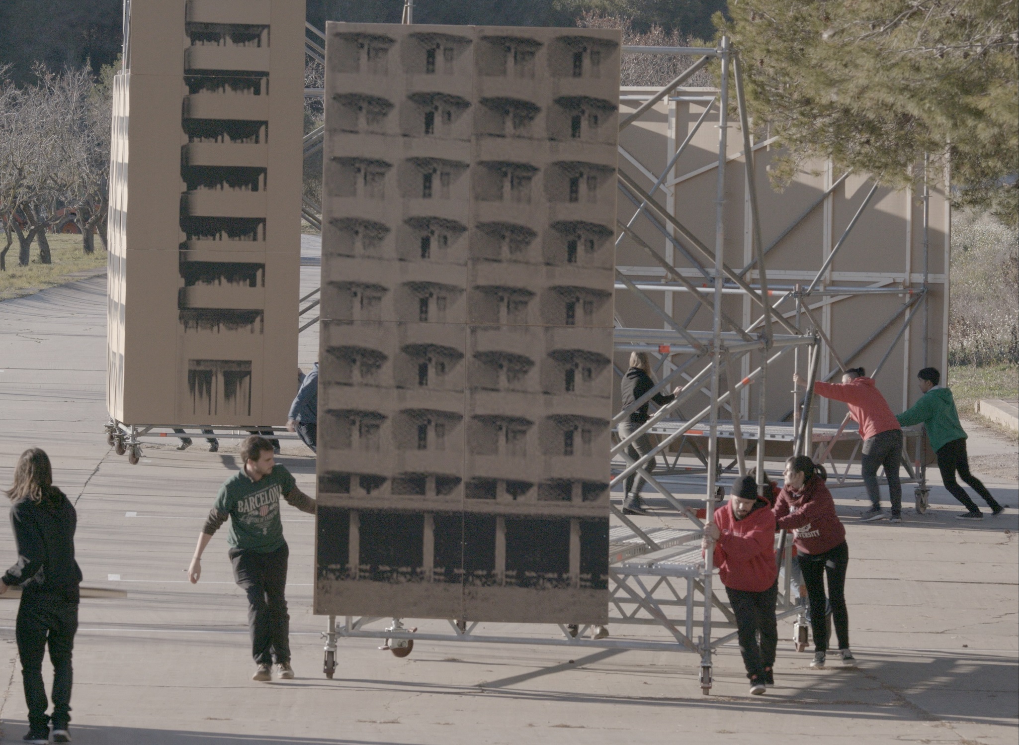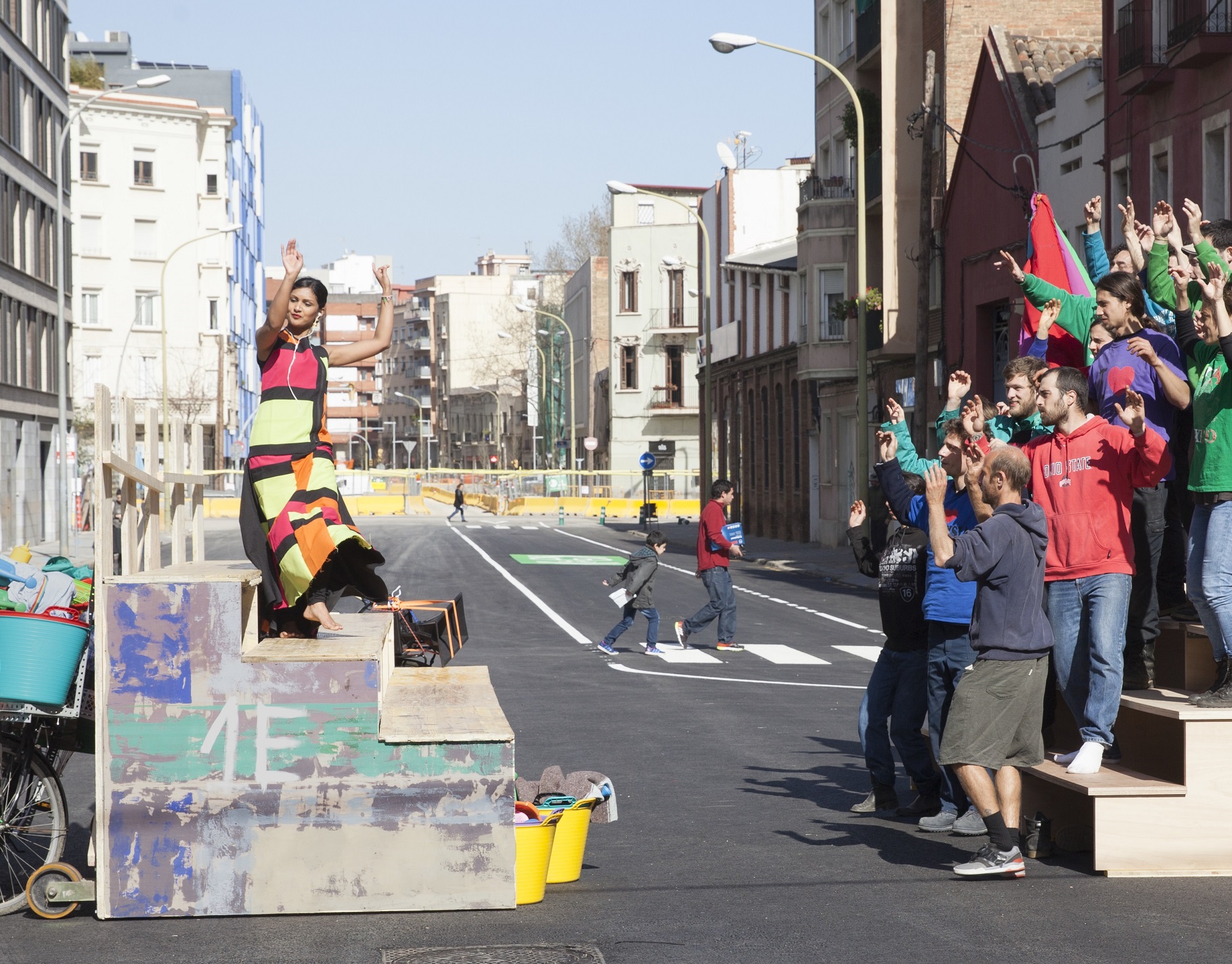 El pabellón español en los Giardini se llena así de estructuras que se encuentran entre la escultura precaria y la arquitectura transitoria y constituyen un teatro para el acontecimiento de su propio público, pero también son el soporte de una serie de relatos videográficos que representan los eventos, los encuentros inesperados, las ocurrencias lúdicas y los gestos colectivos de una comunidad que convierte lo urbano en una posibilidad de intercambio, en una narrativa de anticipación susceptible de afectar a la realidad.