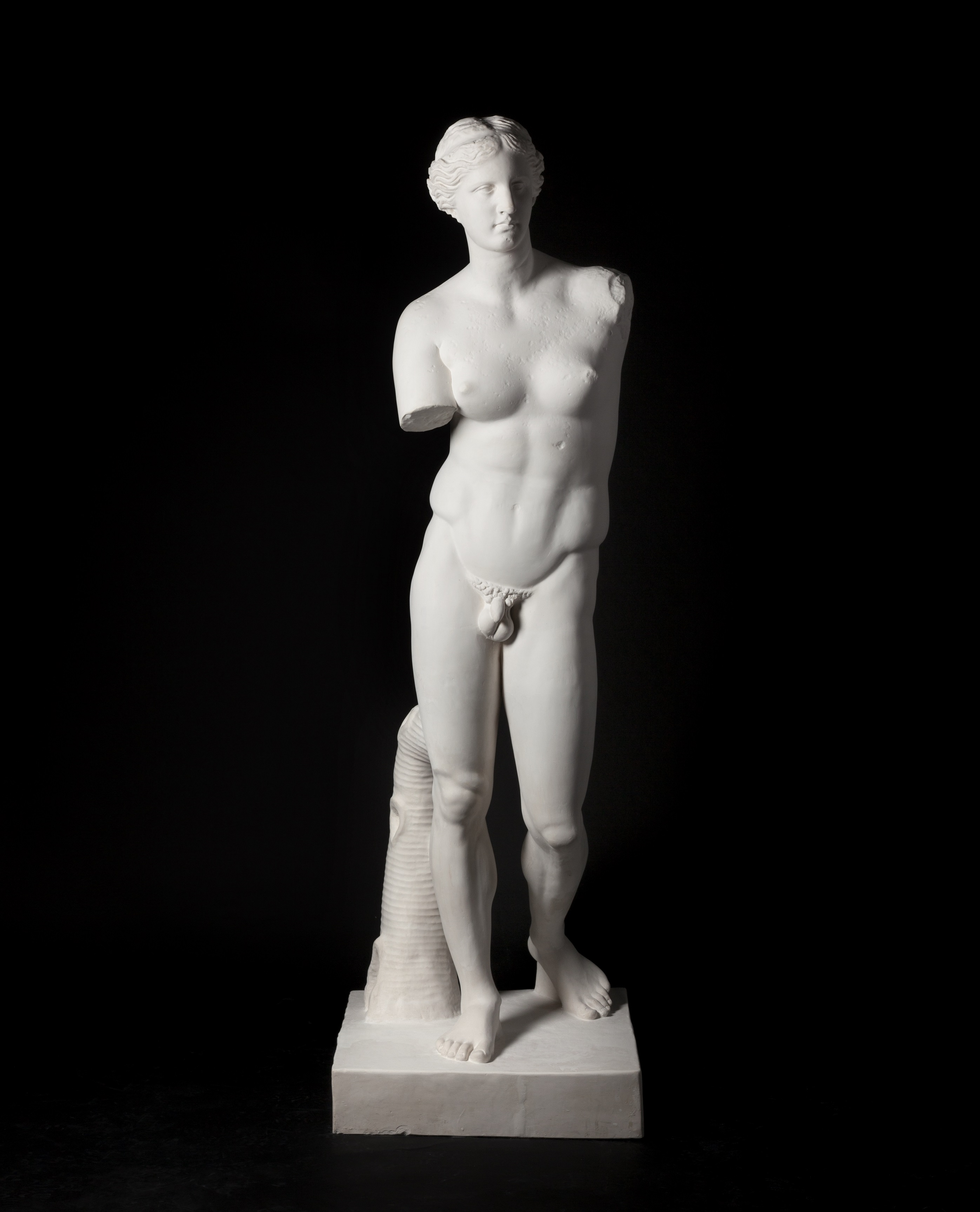 Maté se ha atrevido con los vaciados más célebres para inventar su propia mitología actualizada: Venus hermafroditas o Discóbolos negros se colocan estratégicamente en el laberinto. Un total de 15 figuras, con diferentes grados de intervención, muestran cómo se altera el discurso cuando Apolino, copia de una copia de la obra de Praxíteles, se transforma en Apolina, lo mismo ocurre al enfrentarse a un Adonis (obeso) o una Venus de Médici (hermafrodita).