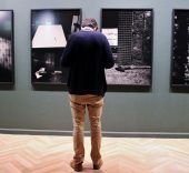 En total, una veintena de fotografías en blanco y negro tomadas entre 2008 y 2013 en Nueva York, Lisboa, París y Berlín, entre otros lugares, conforman una exposición donde la protagonista es la ausencia. Esta “presencia física” se hace patente a través de composiciones verticales en las que la línea frustra el horizonte y los detalles se oscurecen. La transparencia del negro revela un mundo que se destruye constantemente.