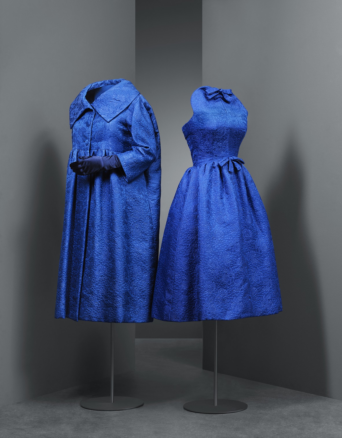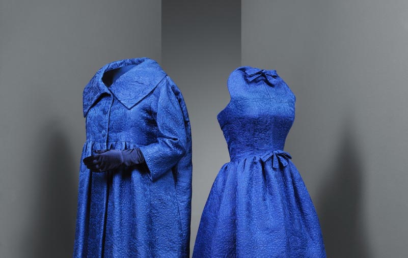 Como anticipo de la muestra, los comisarios, Eloy Martínez de la Pera e Igor Uria, han presentado tres piezas representativas de la exposición: un conjunto de cóctel del año 1958, un conjunto de noche del año 1968 y un abrigo de día del año 1967, todos ellos realizados en el atelier de París.