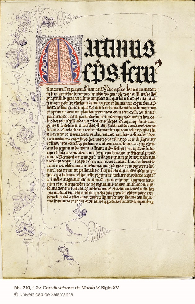 Pero, además, Salamanca cuenta con otra importante procedencia institucional, la de los colegios mayores y menores surgidos en torno a la Universidad desde el siglo XV y que, en el caso sobre todo de los colegios denominados mayores, cuatro en Salamanca de los seis que existían en España, poseían ricas colecciones de manuscritos.