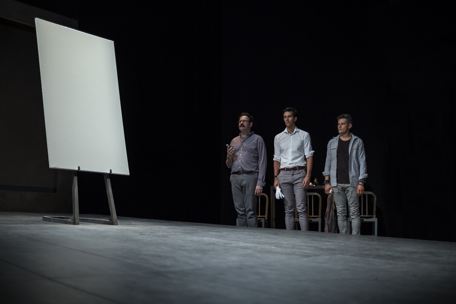 “Solo espero que las representaciones produzcan cosas parecidas a lo que ha sucedido a diario en los ensayos: reflexiones, pensamientos compartidos, confesiones, animadísimas conversaciones y, sobre todo y fundamentalmente, grandes, enormes carcajadas. Debería ser obligatorio reírse a carcajadas y en compañía al menos tres veces al día. Arte está especialmente indicada para ello”, apunta Del Arco. “Alguien dijo que ni la amistad ni el arte son necesarias porque no tienen valor de supervivencia, más bien son de esas cosas que dan valor a la supervivencia”, concluye el director.