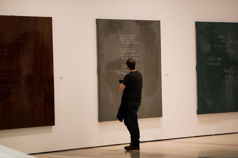 La muestra incluye más de cien obras en las que Lamazares transcribe versos del poeta empleando su conocido Alfabeto Delfín, un código inspirado en el abecedario occidental que el pintor bautizó con el nombre de su padre. La exposición supone, así, un diálogo entre pintura y poesía, el encuentro entre el pintor que quería ser poeta, como Lamazares se ha descrito a lo largo de su carrera, con el poeta enamorado de la pintura.