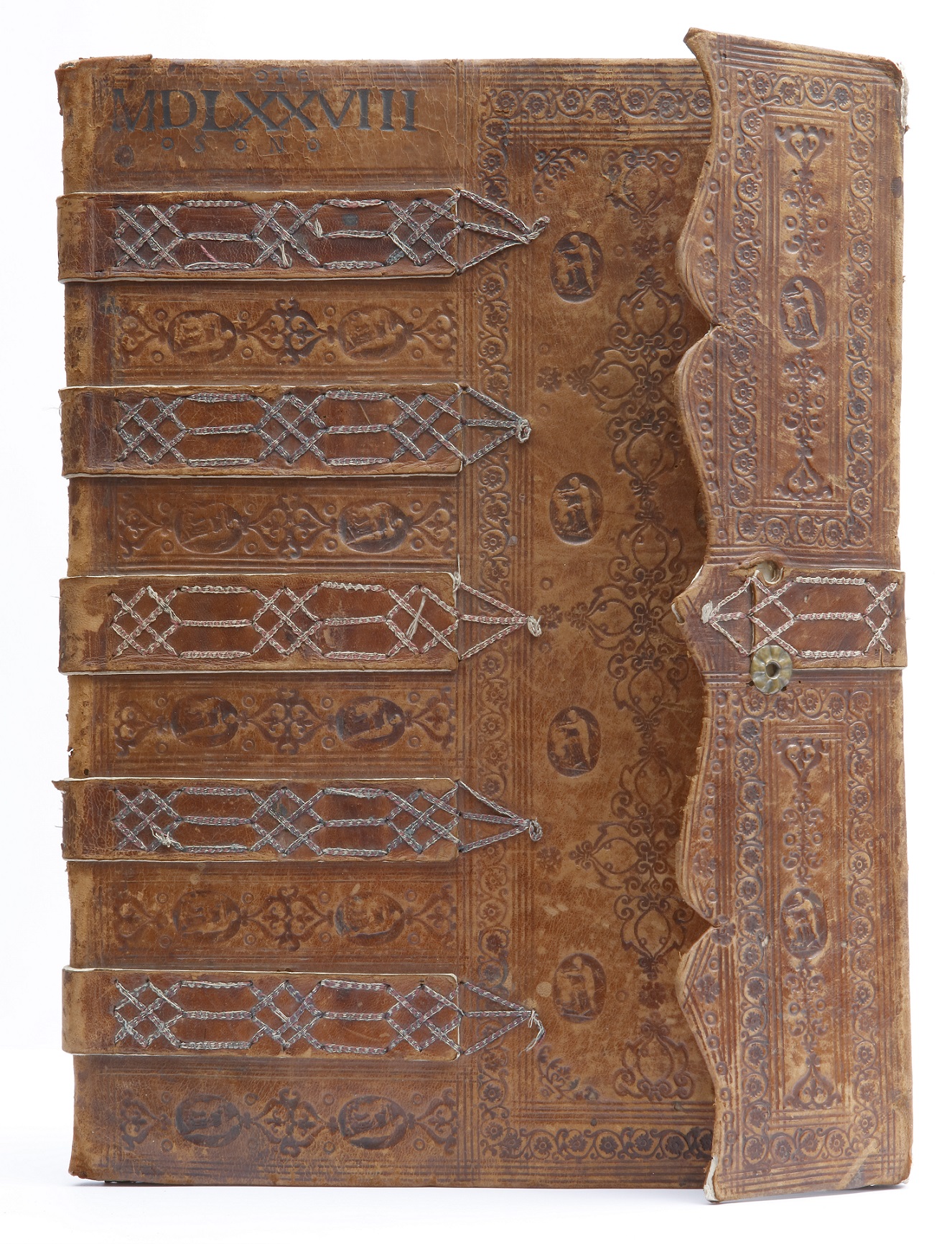 Finalmente, la cuarta vitrina alberga, entre otras, la encuadernación renacentista en cuero castaño sobre cartón que contiene la Carta ejecutoria de Francisco Vela de los Cobos y Pedro Vela de los Cobos, vecinos de la ciudad de Úbeda.