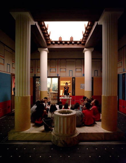 Por último, los visitantes de Romanorum Vita pueden entrar a escondidas en una casa típica de la clase media alta romana, pasear por sus distintas estancias y descubrir su distribución, la decoración empleada, los vivos colores con que pintaban las paredes, etc.
